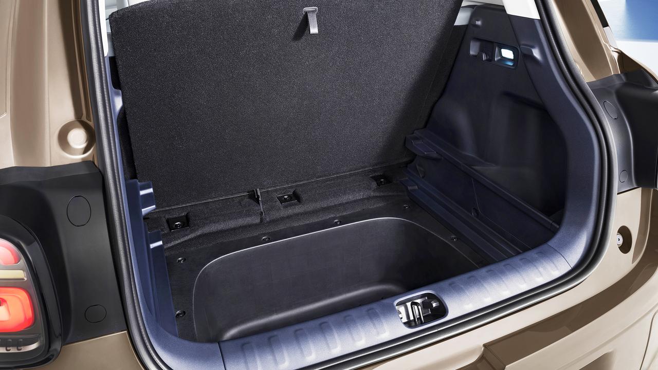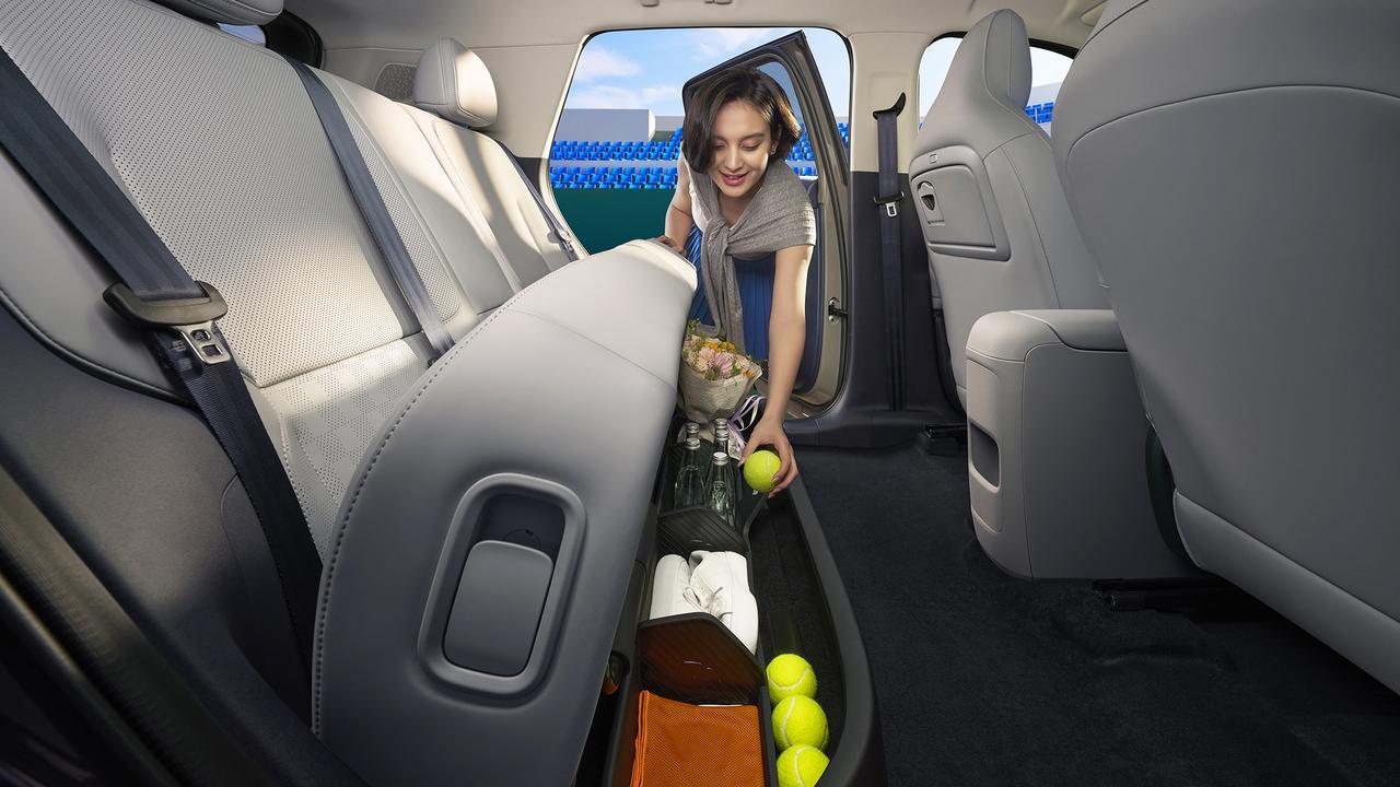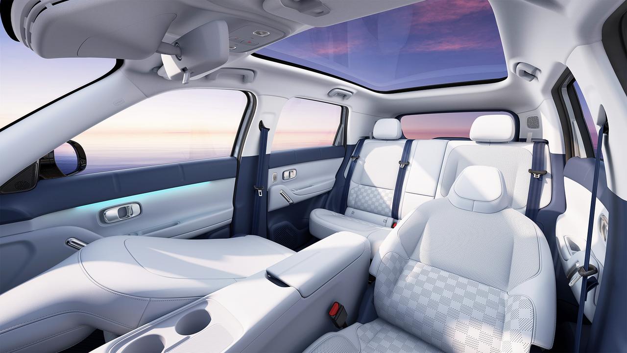 新车尺寸为4270×1810×1635毫米,轴距2605mm,有百变座椅模式和丰富储物空间,后备厢106L可冲洗下沉储物舱,基础容积602L。