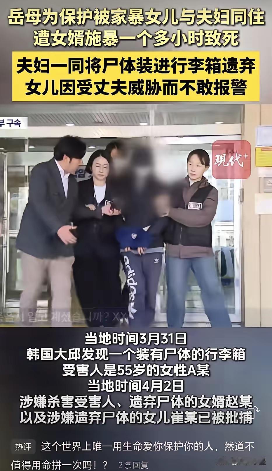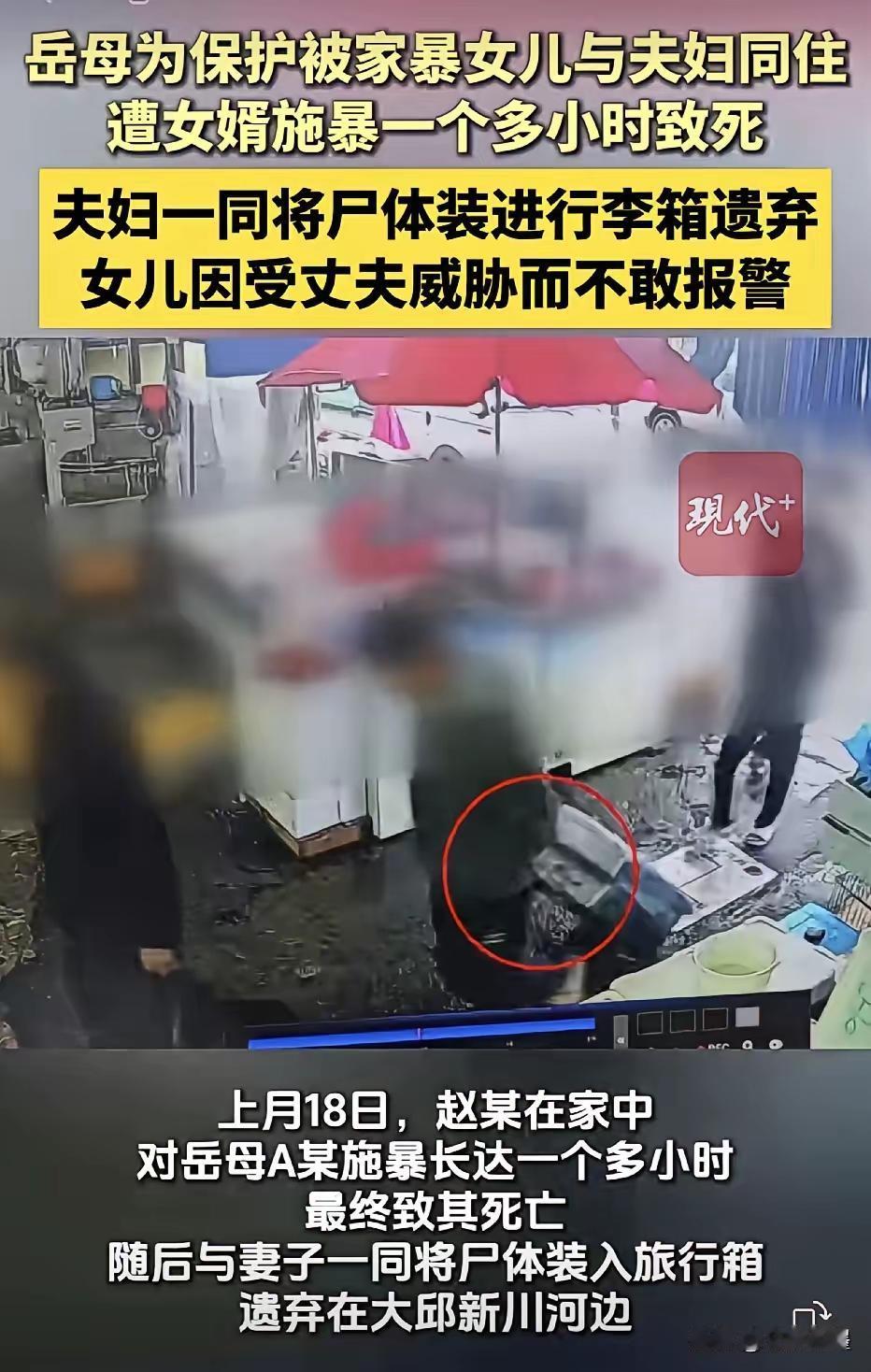 母亲为保护被家暴的女儿搬去同住,却被女婿活活打死!女儿帮凶:一起把尸体装进行李箱扔进河里