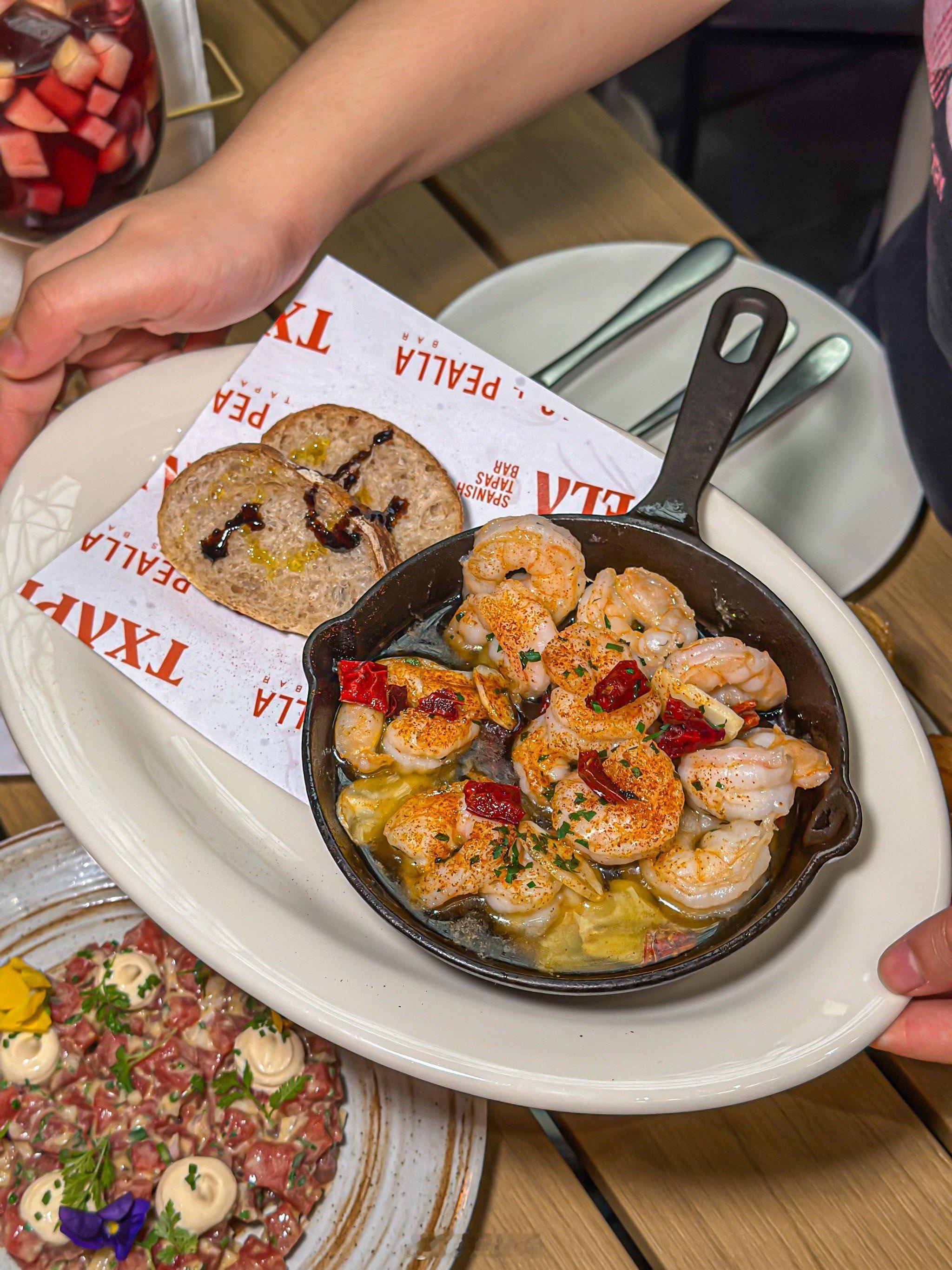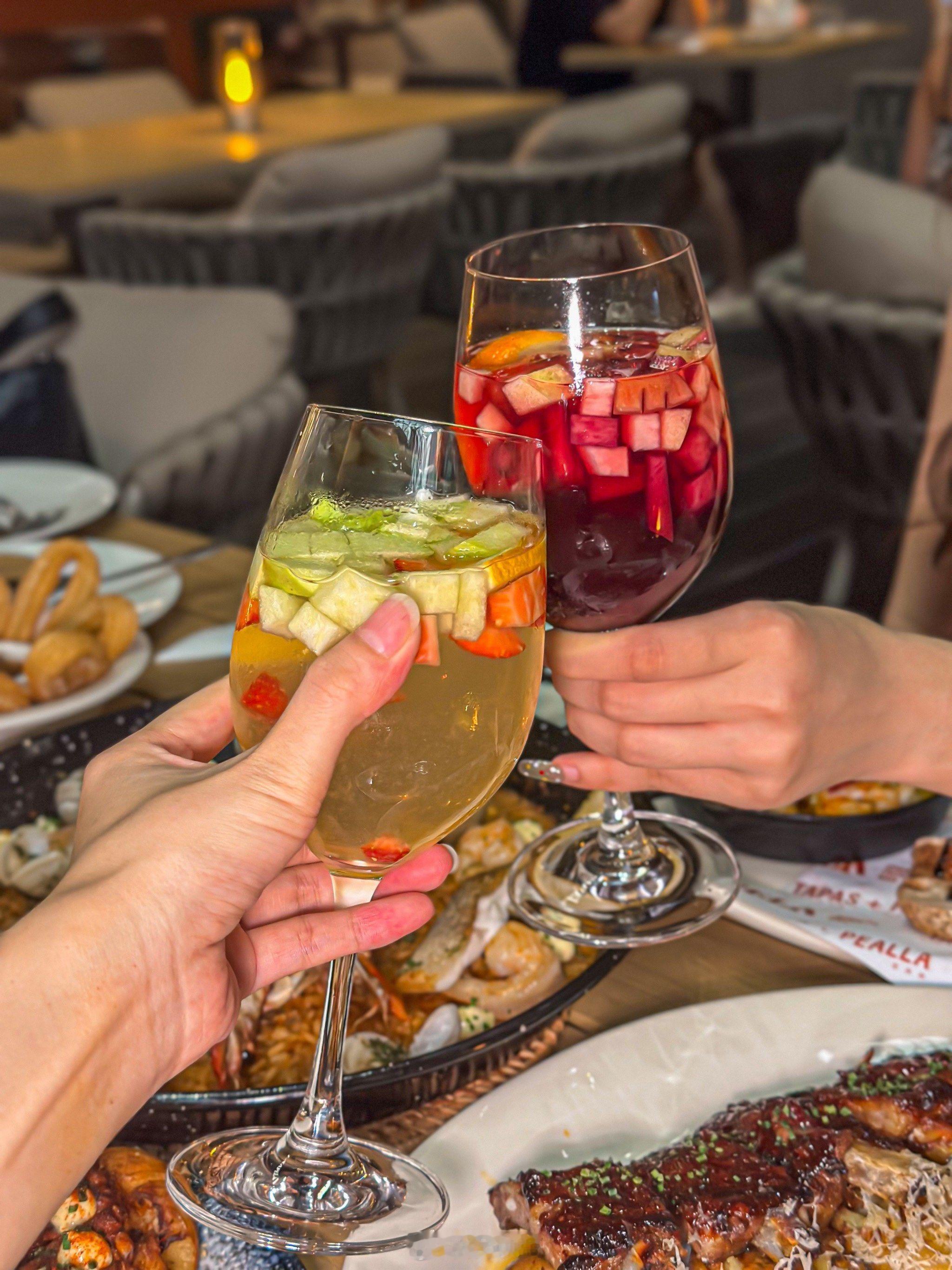 食趣西班牙 打卡市中心地道西班牙小馆,暖黄灯光搭配弗拉门戈元素氛围感拉满。招牌瓦伦西亚海鲜饭米粒金黄弹牙,藏红花香气浓郁,锅巴焦香酥脆;伊比利亚火腿薄如蝉翼,咸香回甘;蒜香大虾蒜香扑鼻,虾肉紧实Q弹。搭配桑格利亚果酒,酸甜清爽,一口解锁地中海风情。EatLikeaSpaniard西班牙美食美酒