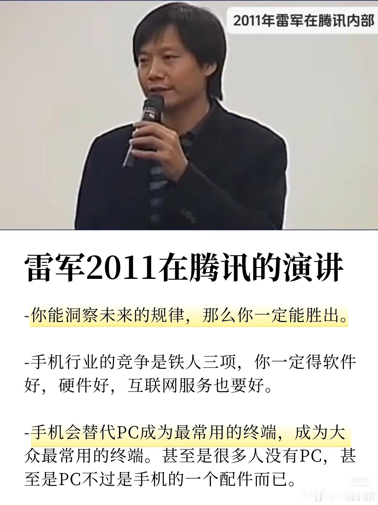 雷总11年这段腾讯演讲又火了雷军2011年在腾讯大厦的演讲总结,预判逐一实现。