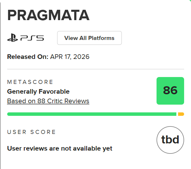 《识质存在》Metacratic,Opencritic媒体评分现已出炉,OC站87均分,M站现有88家媒体给出了均分86分的评分,其中PS5平台91分,PC平台87分,Switch 2平台89分,Xbox95分。媒体方面,IGN8分,GameSpot9分,博主Shinobi602汇总了部分媒体评分,如下: