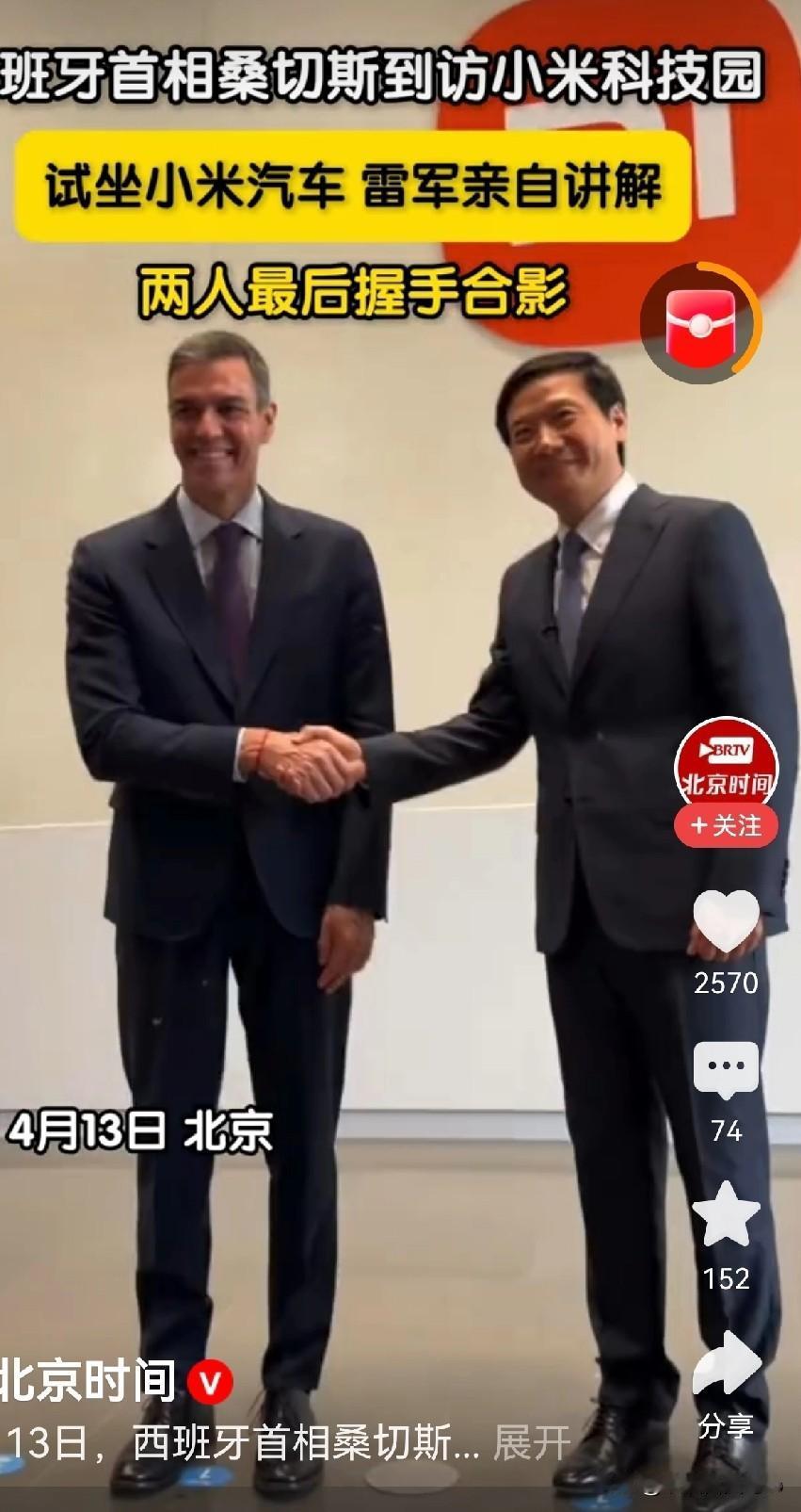 西班牙首相桑切斯也来小米捧场