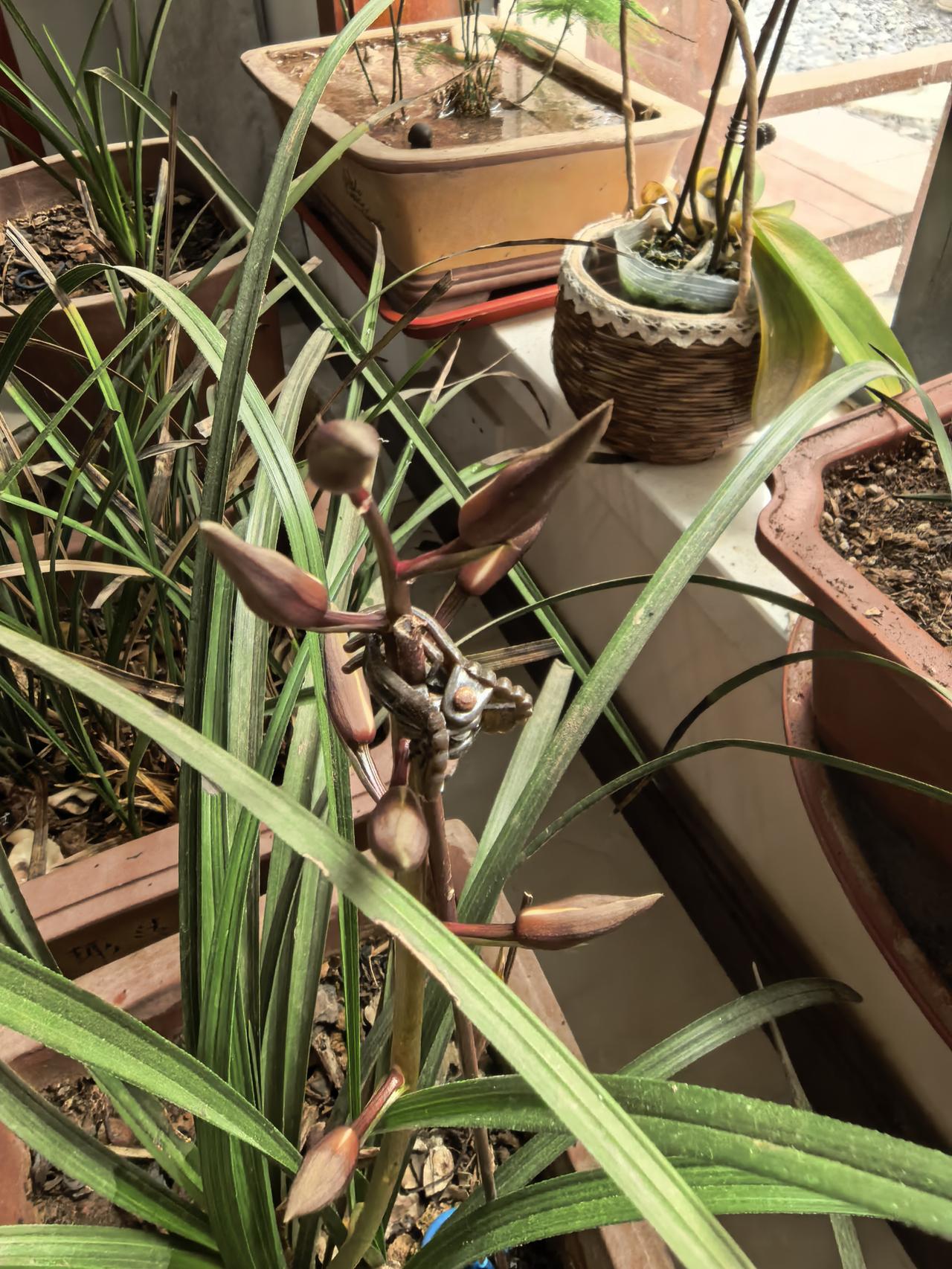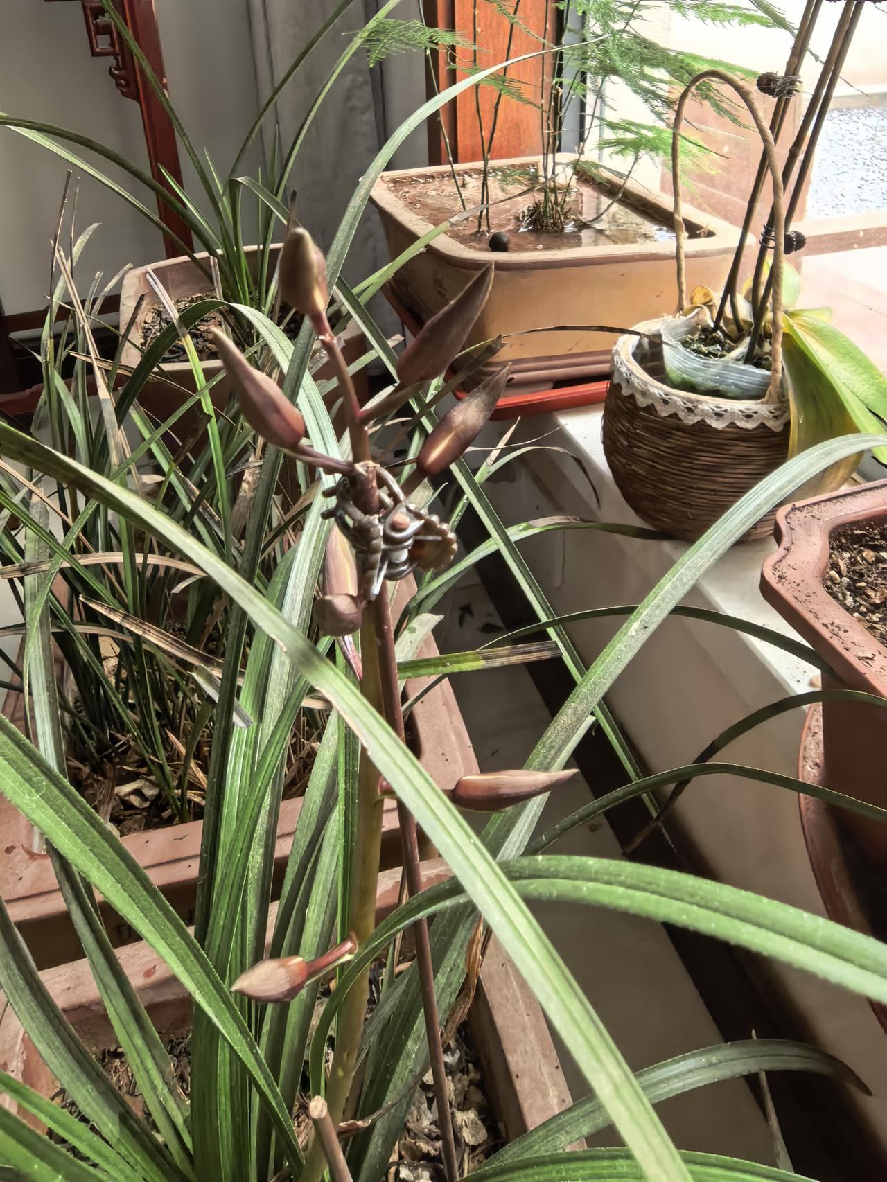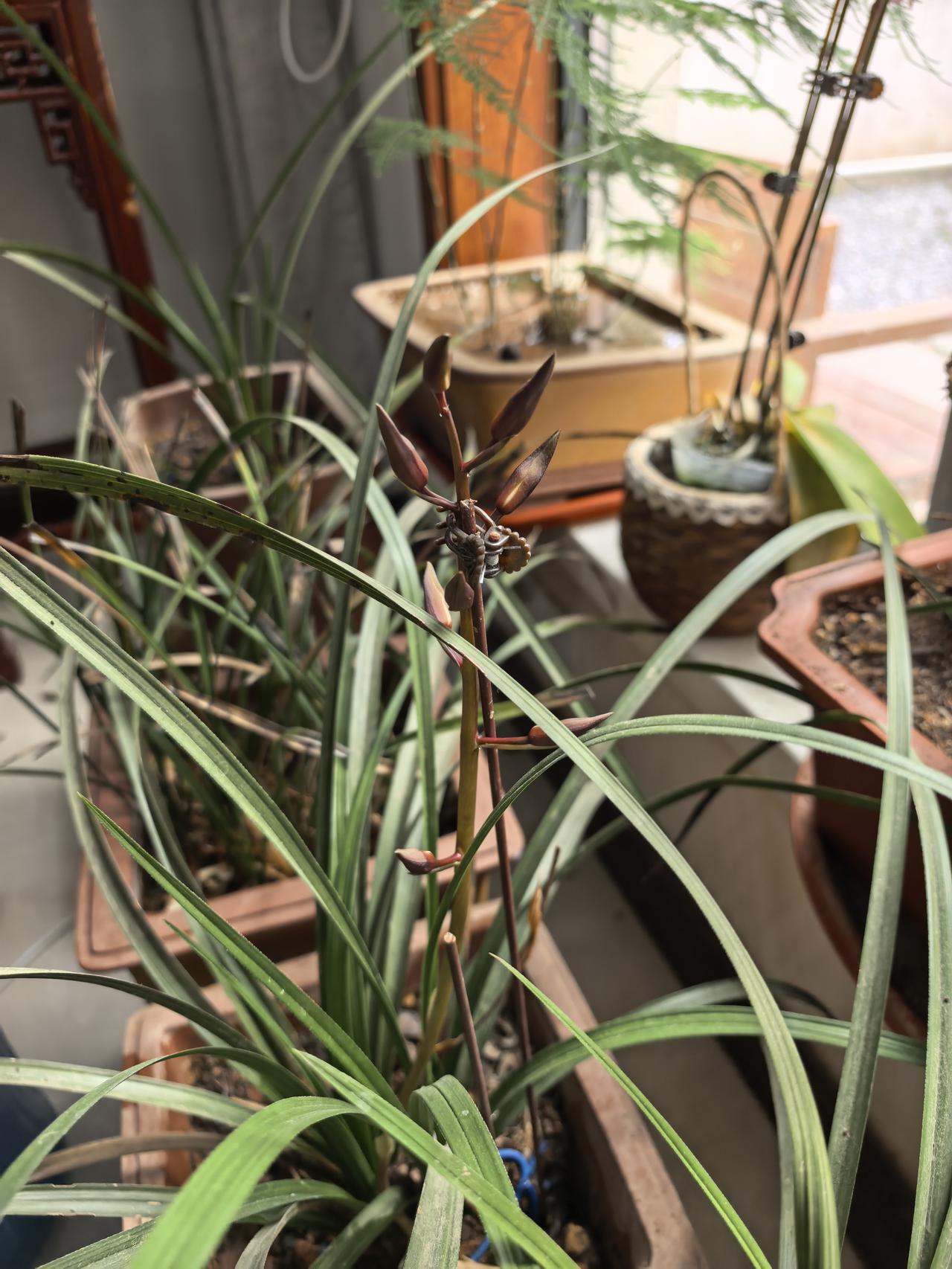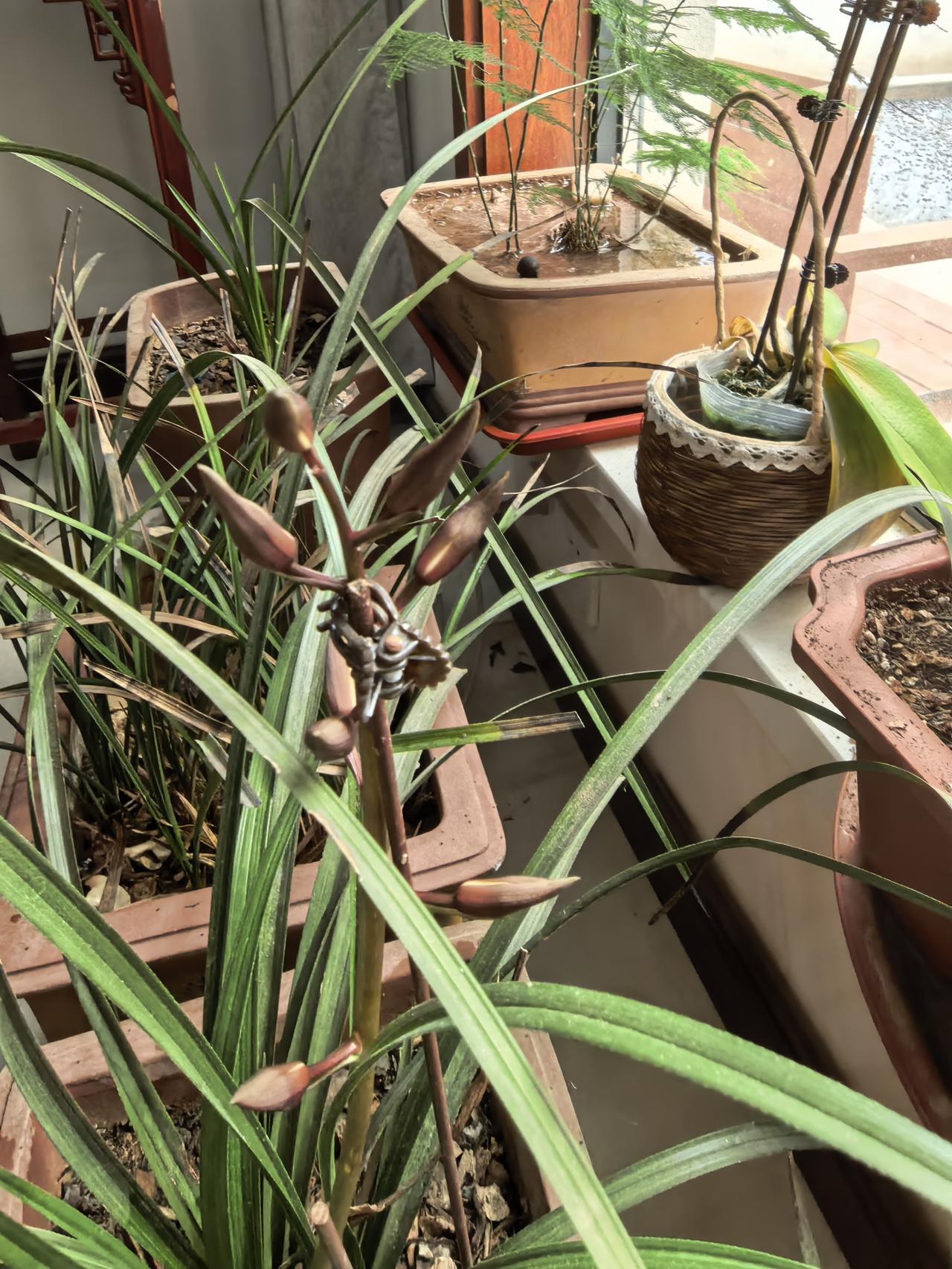 今年三盆兰花中只有一盆开花,共有一支花径八朵小兰花,开花后花朵很漂亮,很清香的味道,去年三盆都开了,不知道什么原因另两盆今年没有开花。