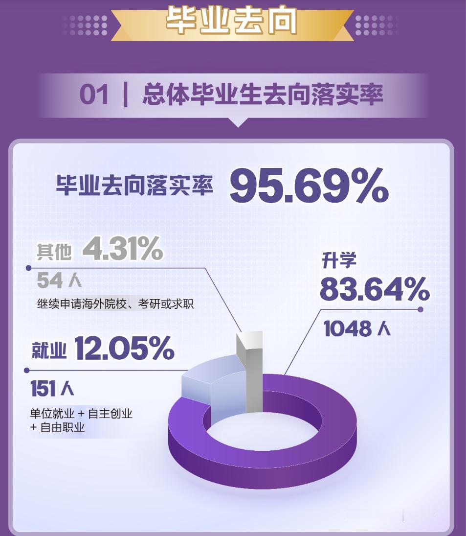 近日,香港中文大学(深圳)公布了2025届国内统招本科生就业质量报告。2025届国内统招本科毕业生共有1253人,升学的1048人,占总数的83.64%;就业的151人,占总数的12.05%,总体去向落实率为95.69%。与国内高校相比,也是相比不错!