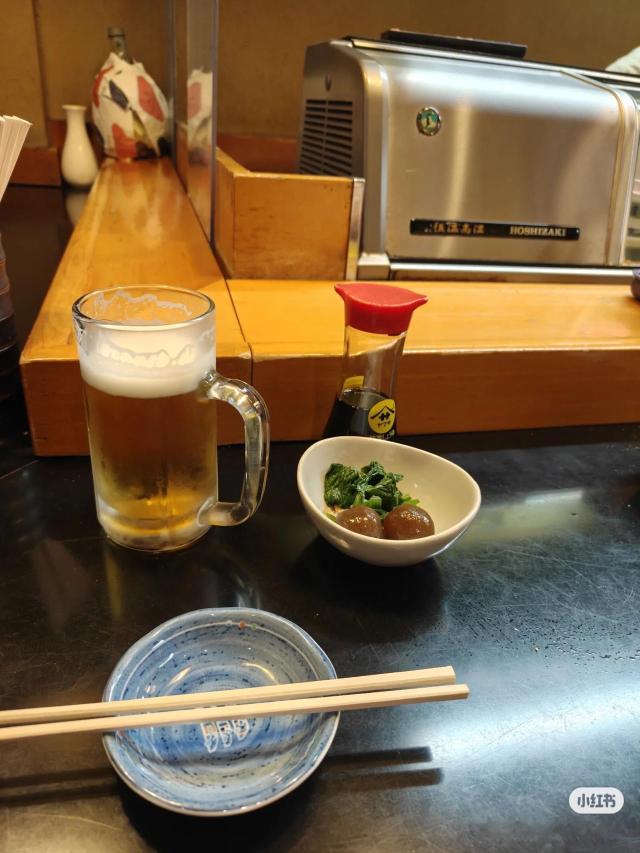我是第一个走进店里的客人,老板娘喜形于色,我要了两杯朝日啤酒,要了一盘三文鱼刺身;还要了一个煎蛋卷,要了一盘烧马鲛鱼块。我也忘了给自己许个什么愿望了,就喝着啤酒,大口朵颐起来!由于店里没有其他客人,老板娘在吧台上假装看着账单,其实不时的用余光看我。我也是一样,有的时候正好我们四目相对的时候,难免有些尴尬😓。