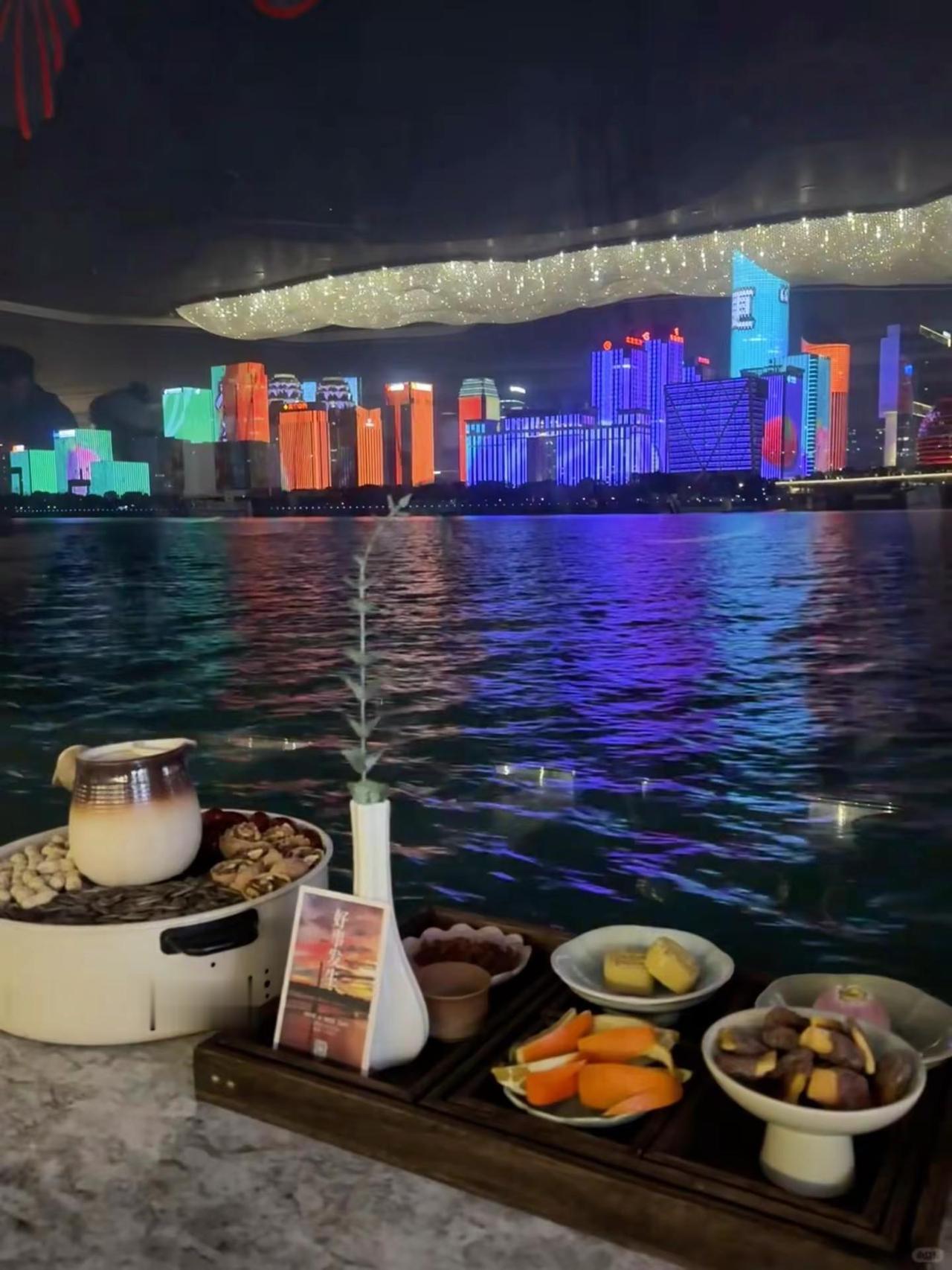 杭州也有这么美的游轮餐厅了,夜景太美了吧 钱塘江夜景