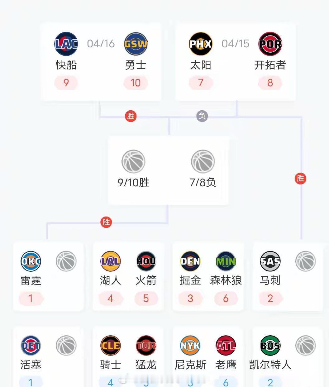随着掘金擒马刺 湖人狂胜 勇士输快船 NBA西部排名+季后赛对阵全出炉北京时间4月14日,NBA常规赛已经全部结束,在最后四场比赛中替补阵容的掘金128-118掀翻了马刺,爵士107-131惨败詹姆斯高效带领的湖人,勇士末节断电110-115不敌快船,国王后程发力以110-122输给了开拓者,这样一来最终的西部排名出炉了,季后赛对阵也已经确定,让我们一起来看下,具体看下图!掘金对阵马刺。两队排名前三,本轮上演碰撞,不过马刺非常想赢,除了文班亚马缺阵其他主力都在,而掘金则是约基奇带着替补出战。结果马刺使出浑身解数无力匹敌掘金,掘金替补发挥非常生猛,保持对马刺的压制,分差持续扩大,最终马刺偷鸡不成蚀把米,主力打了30分钟最后还是输球,真的是辣眼睛!爵士对阵湖人。本场比赛没啥悬念,两队整体实力不可相提并论,湖人实力压制爵士,结果上半场詹姆斯高效发挥,带领湖人暴打爵士,分差大幅被甩开。下半场湖人进攻仍然压制爵士一头,分差持续扩大,最终湖人势如破竹6人得分上双全民皆兵打爆了爵士,以3连胜完美结束!勇士对阵快船。本场比赛勇士全主力出击,为即将到来的附加赛磨合找状态,结果面对小卡缺席的快船,勇士和快船打起来了拉锯战,场面上难解难分,一度来到最后时刻,快船进攻突然发力打出一波流得分高潮直接杀死比赛,勇士无力追分,这样一来快船力擒勇士,两队也确定在附加赛相遇!国王对阵开拓者。本场比赛对于开拓者来说至关重要,必须尽力而为击败国王争取锁定第八,这样才能够确保附加赛有两条命。由于双方实力悬殊,开拓者剑指胜利基本上十拿九稳。比赛开始后两队一上来就展开对攻,火花四射难分伯仲。次节开拓者全民皆兵单节打出44-24的比分,单节净胜20分。下半场开拓者进攻效率断崖式滑落,国王趁机发力内外结合蚕食比分。末节快船及时稳住阵脚,重新发力遏制对手的反扑,最终开拓者轻松击败国王锁定前八!接下来西部季后赛对阵已经确定,目前已经确定两组对决,那就是第四的湖人大战第五的火箭,引爆流量火湖大战。第三的掘金打第六位的森林狼,卫冕冠军雷霆的对手来自附加赛,马刺的对手也来自附加赛,附加赛对阵是快船大战勇士,这组输球直接回家,赢球后再赢一场才能够锁定季后赛。而太阳对决开拓者胜者直接晋级季后赛,输球者也还有一次冲击季后赛的机会!