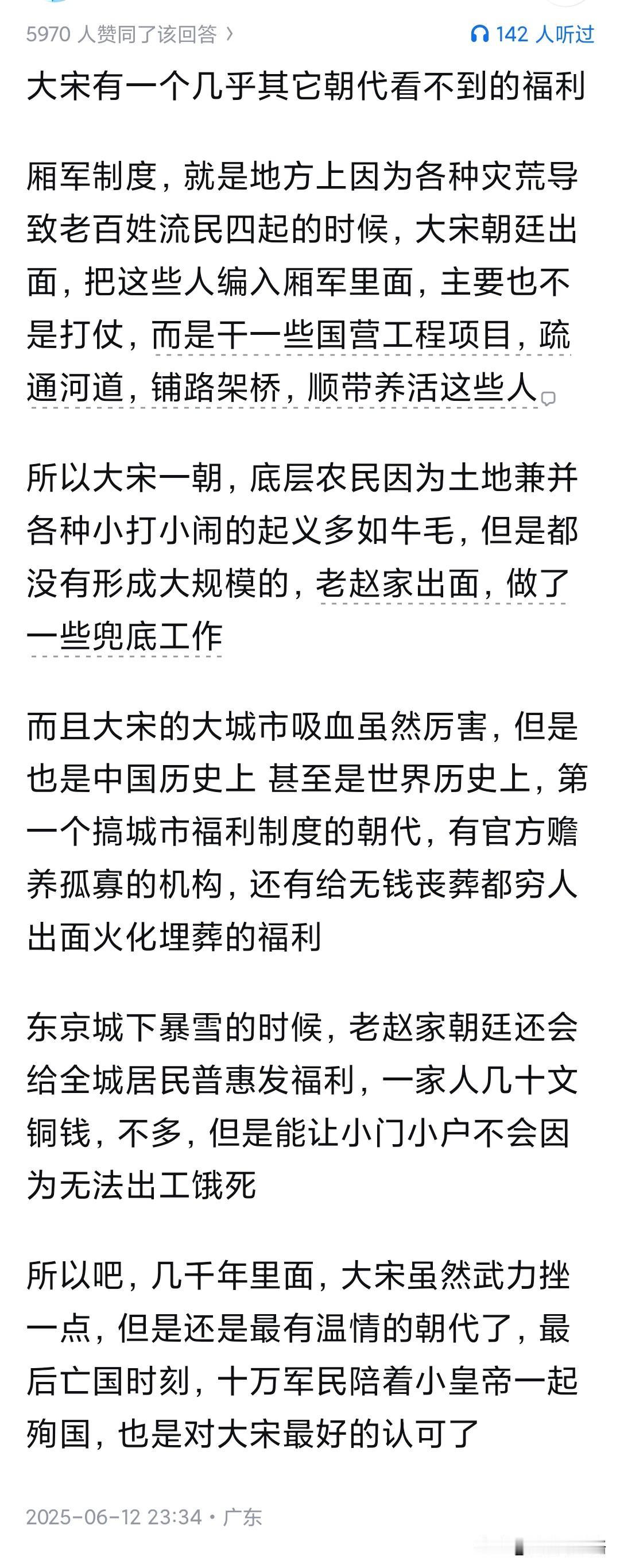 虽然宋之后的朝代都喜欢嘲笑宋,但是到今天为止它们还没一个能活过宋的。治民以宽仁,这五个字虽然简单,但是真做起来可很难。
