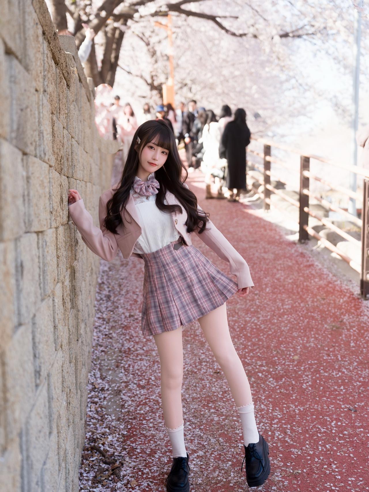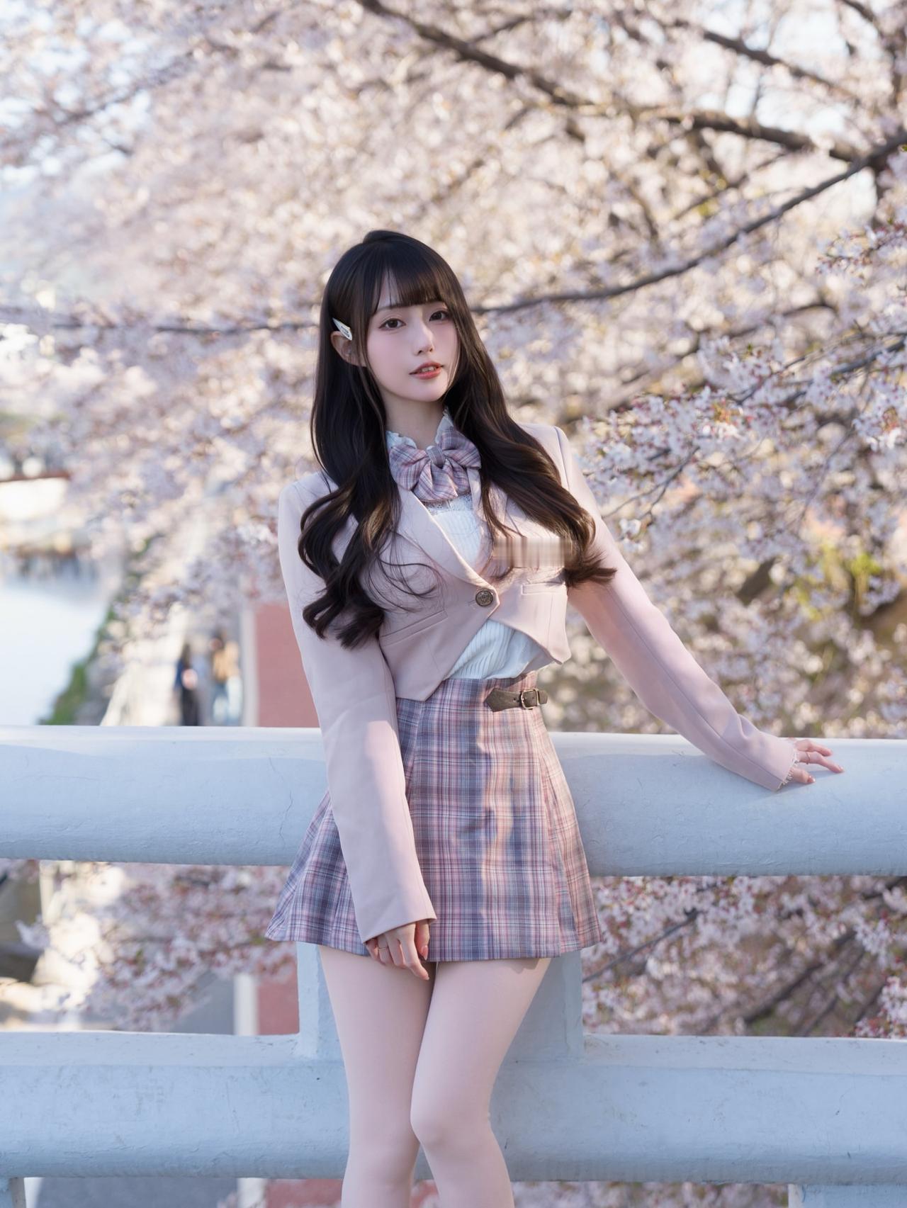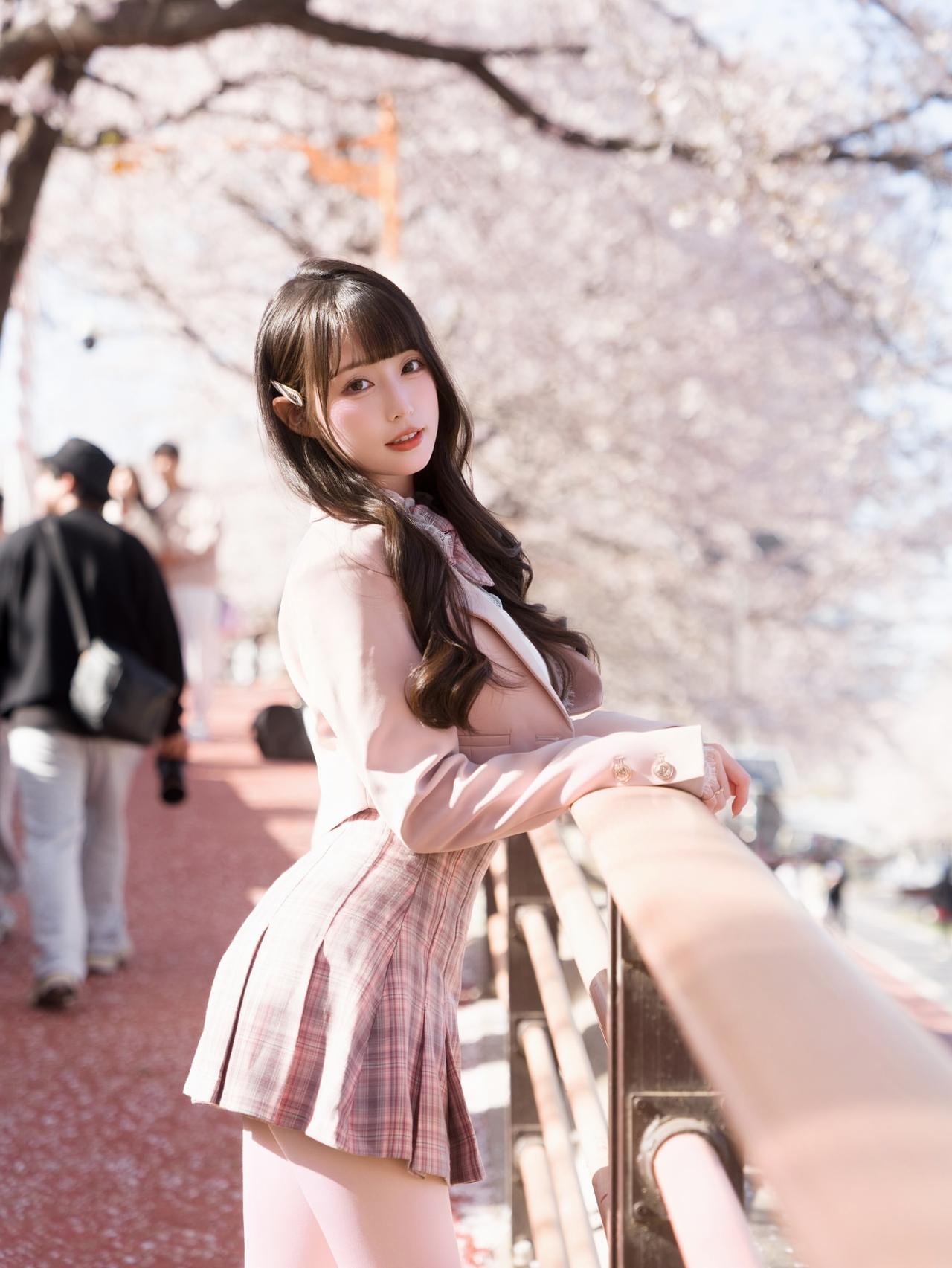 樱花树下,少女轻笑,春日暖阳洒满心间。甜美小仙女的穿搭 分享唯美的美照 女人怎么