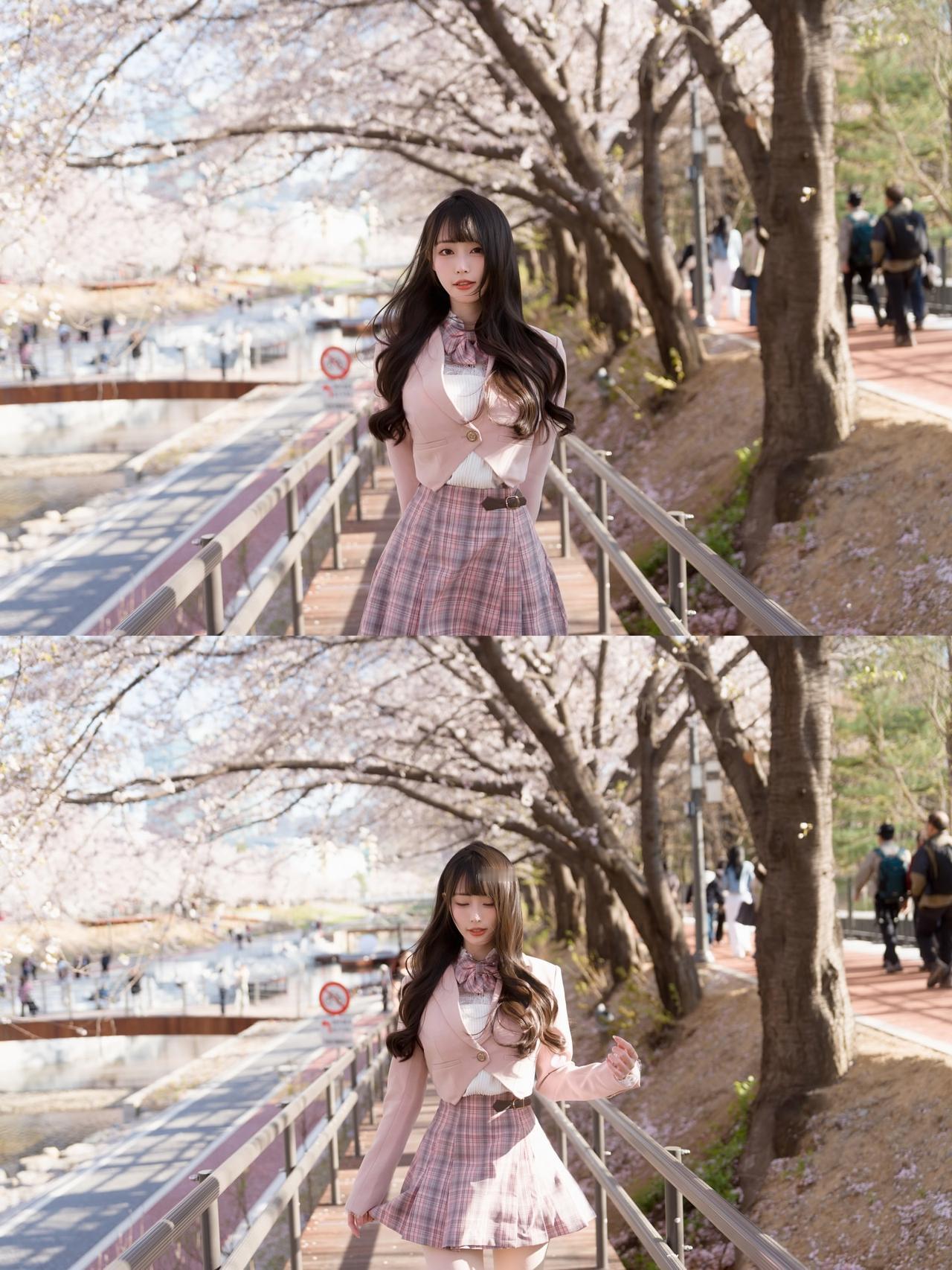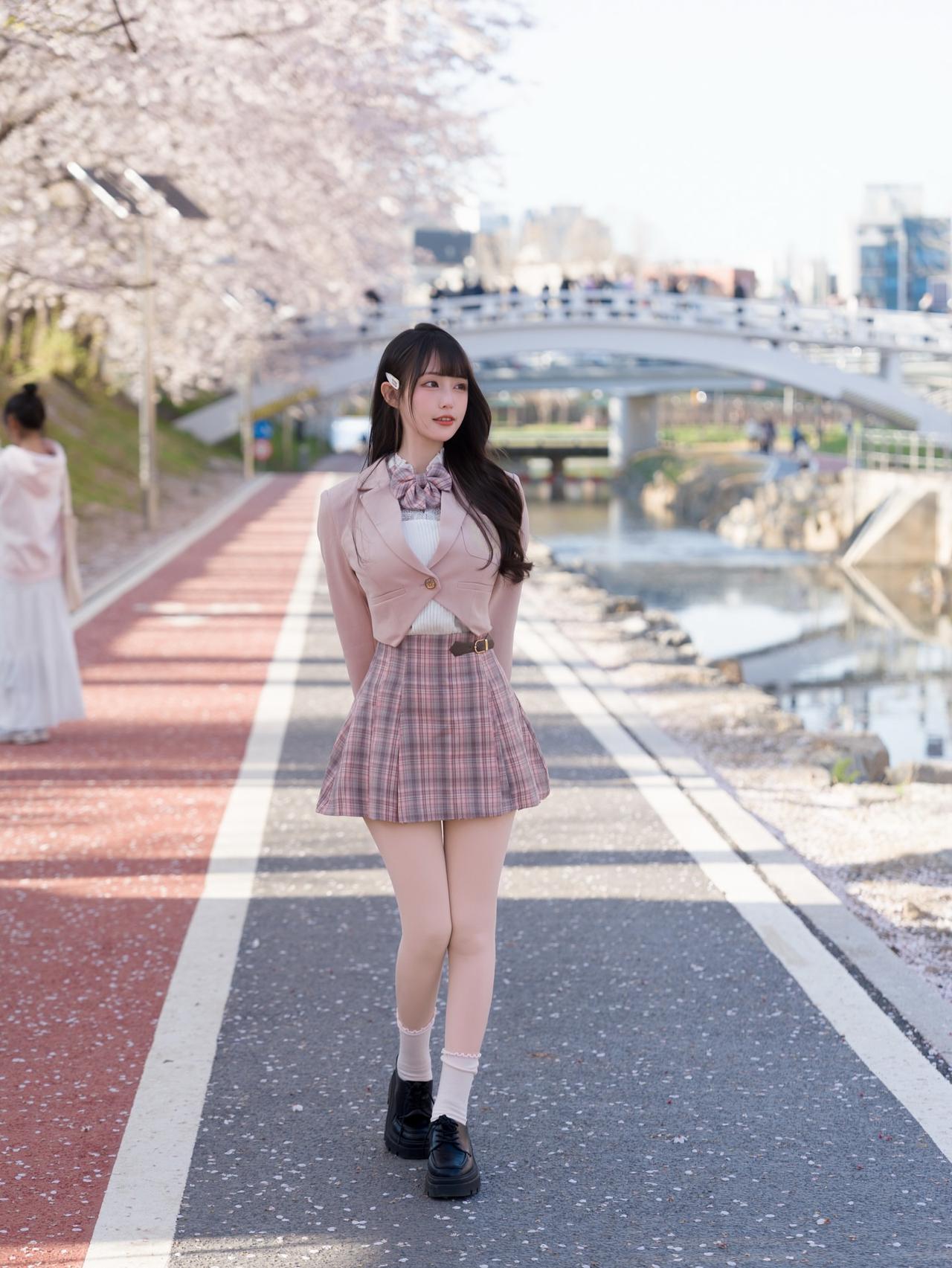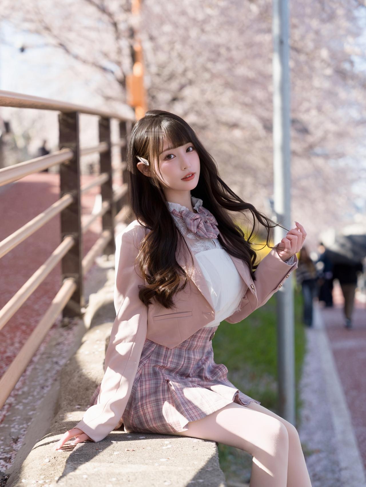 樱花树下,少女轻笑,春日暖阳洒满心间。甜美小仙女的穿搭 分享唯美的美照 女人怎么