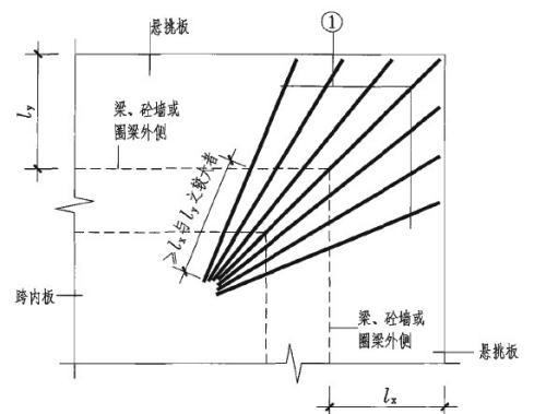 咱们盖房常遇到楼板的阳角、飘窗角、阳台拐角这些地方,受力集中,后期容易出现细小裂缝,下雨还可能渗水。放射筋就是顺着这些拐角,像扇子散开一样摆的钢筋,能把拐角的受力分散开,牢牢拉住混凝土,防止裂缝变大,延长楼板使用寿命,避免后期修修补补费钱又麻烦。
