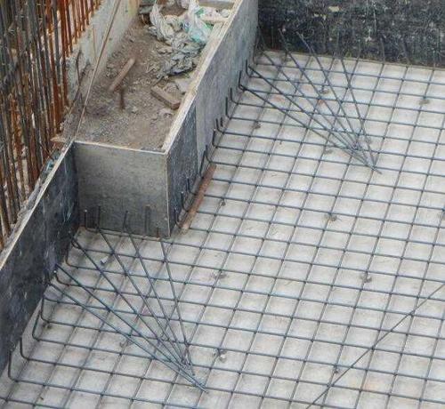 做法特别简单,不用复杂手艺:一般在楼板阳角位置,放7-8根细钢筋,长度大概1米左右,一头集中扎在拐角顶点,另一头向楼板里散开铺,间距均匀,和楼板底部的主筋绑牢固,浇筑混凝土的时候一起埋进去就行。比如阳台外角、客厅楼板突出的拐角,都得加上,花不了多少材料,却能让楼板更结实,住得更放心。