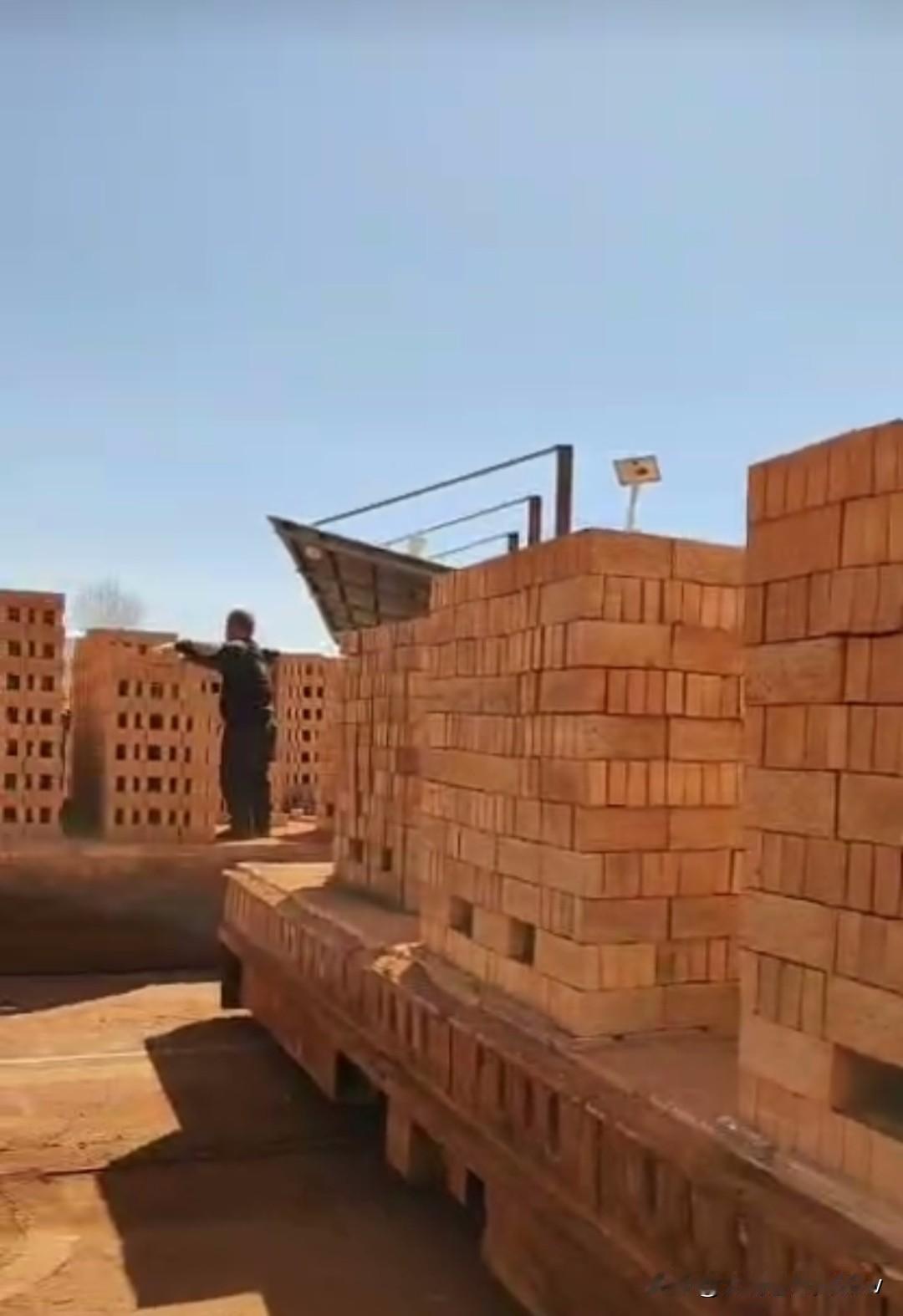 他们的主要工作,就是把刚从窑里将烧制好的红砖,重新堆码成用户想要的数量,比如:774、534、854,每剁四块,每层40块,分十一层、十层,七层,码好后,用打包机直接打包,便于装运。