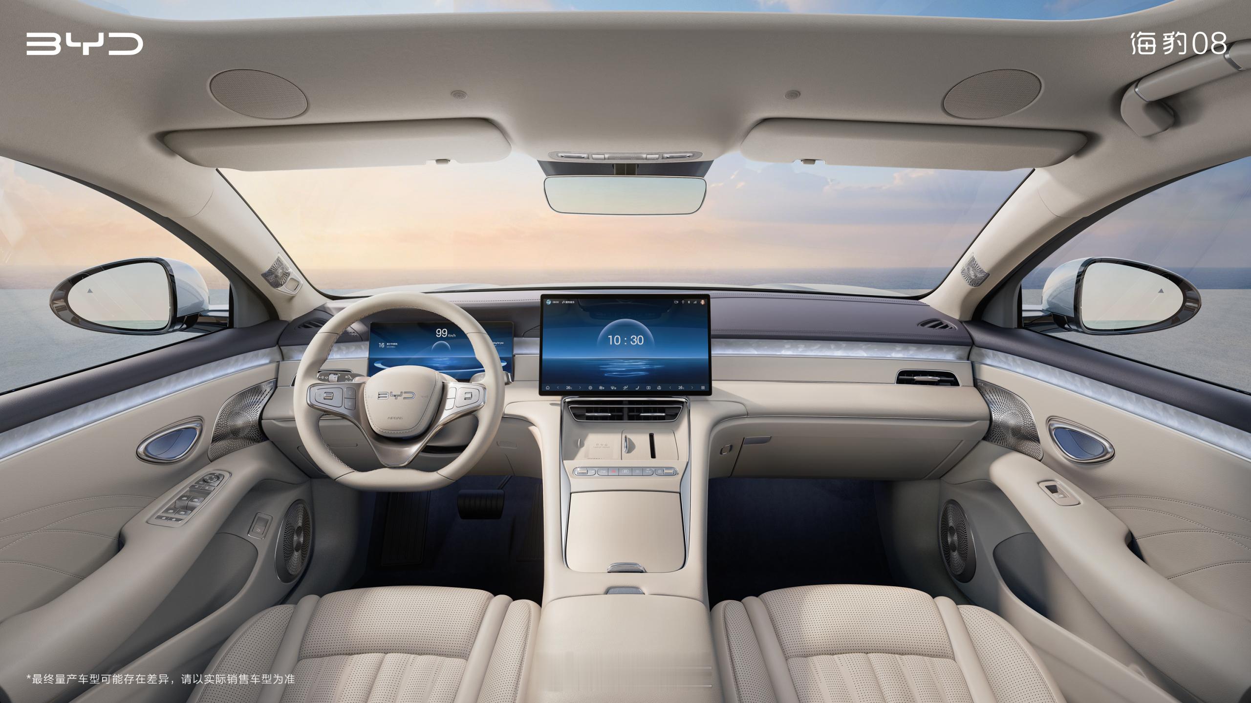 海豹08内饰,方向盘新照型,氛围灯有惊喜,整体很润