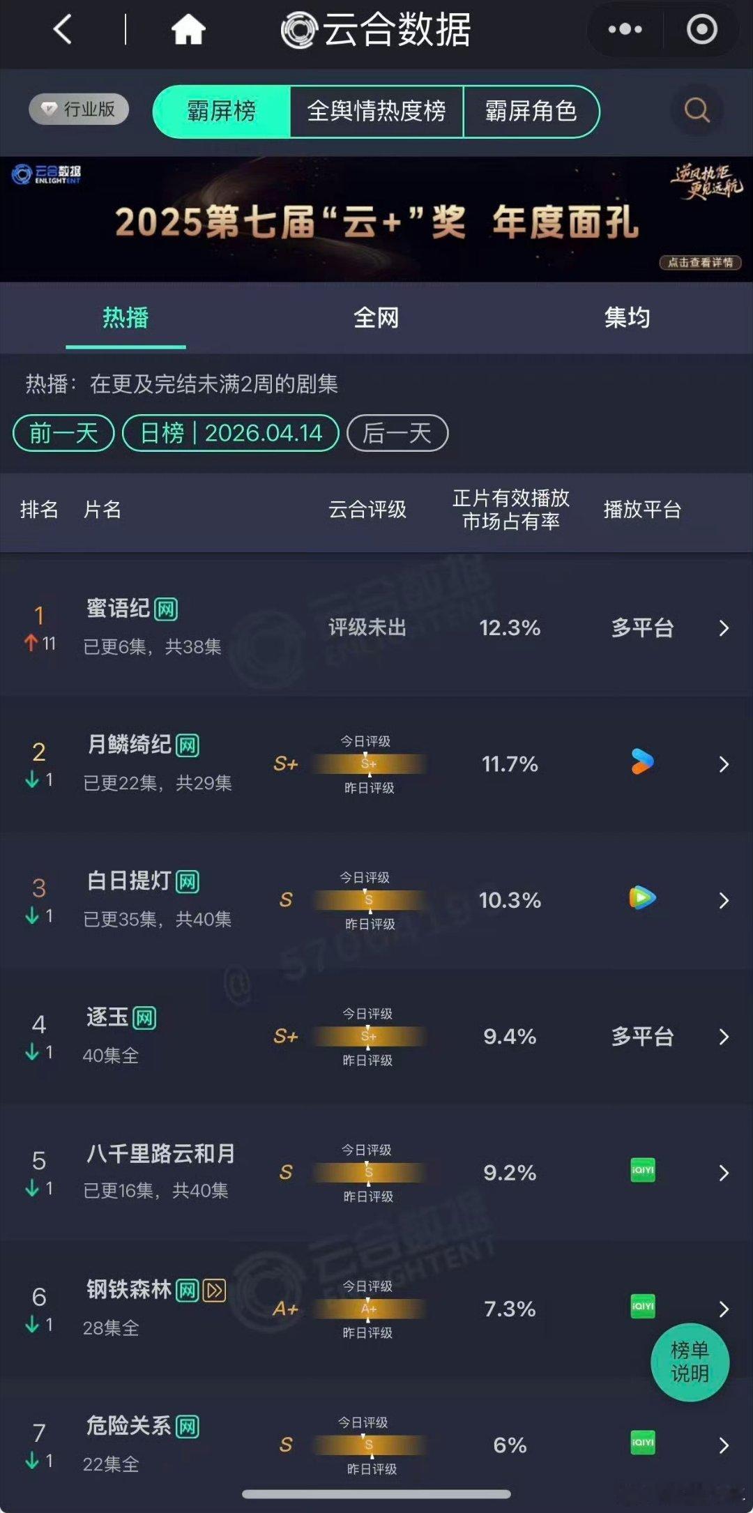 蜜语纪开播第一天云合登顶蜜语纪开播首日云合登顶爆剧预警!钟汉良,朱珠《蜜语纪》开播首日就拿下云合榜首,热度断层领先,高质量中偶值得所有人追!