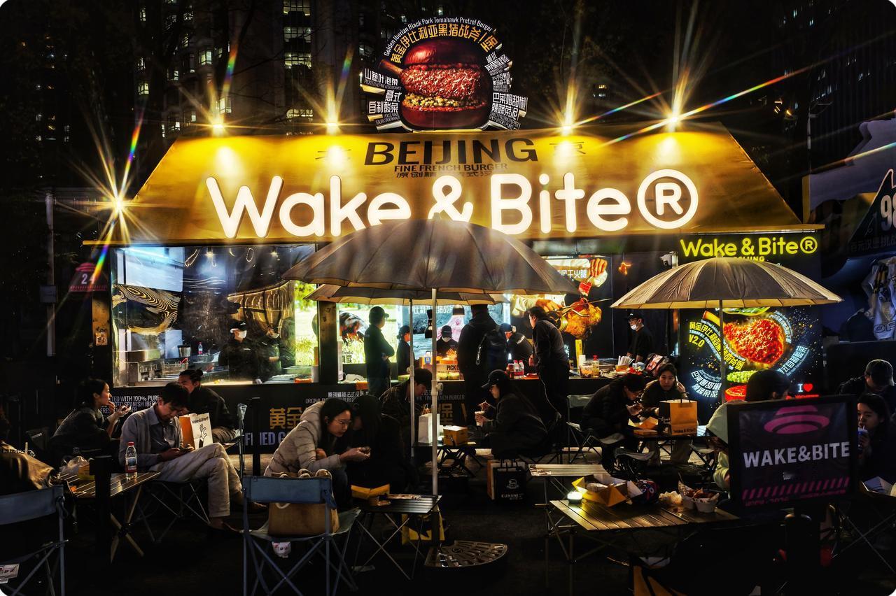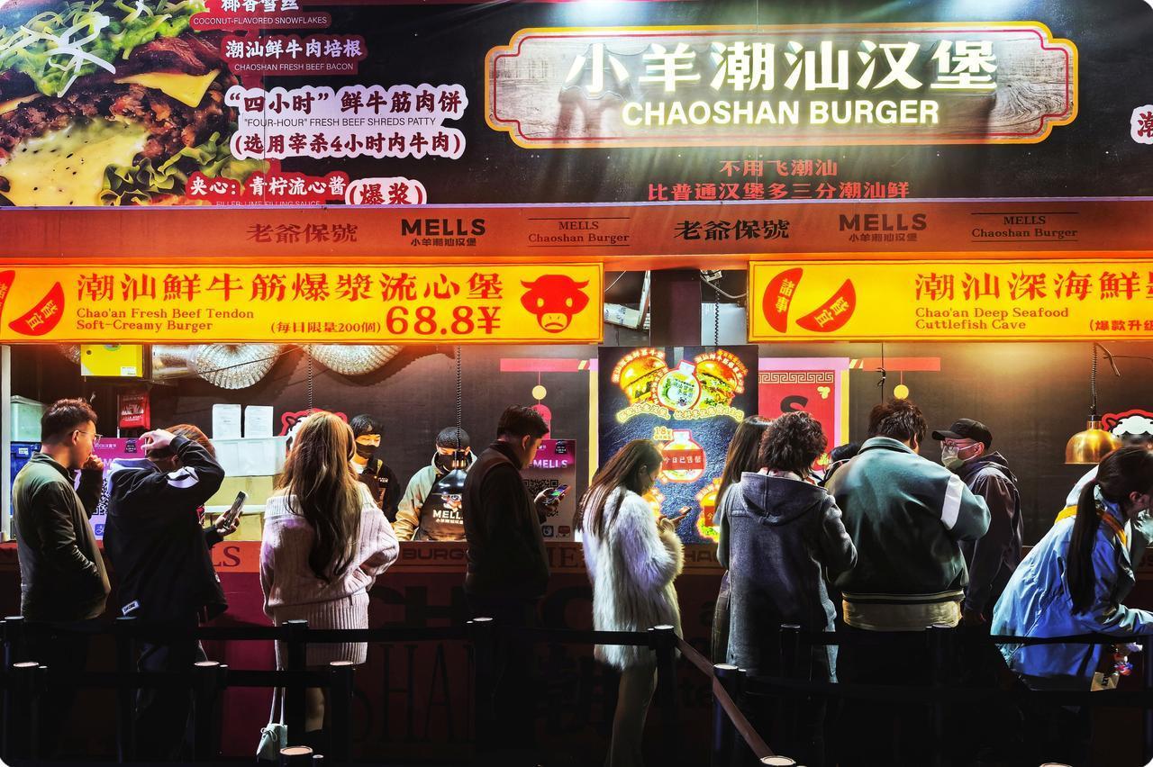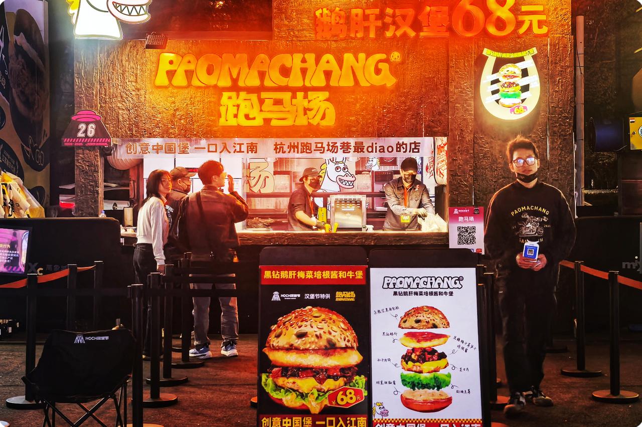 灯光闪烁,似星辰在欢唱,人们穿梭,眼神满是渴望。咬下一口汉堡,快乐在膨胀,每一口都是独特的时光。