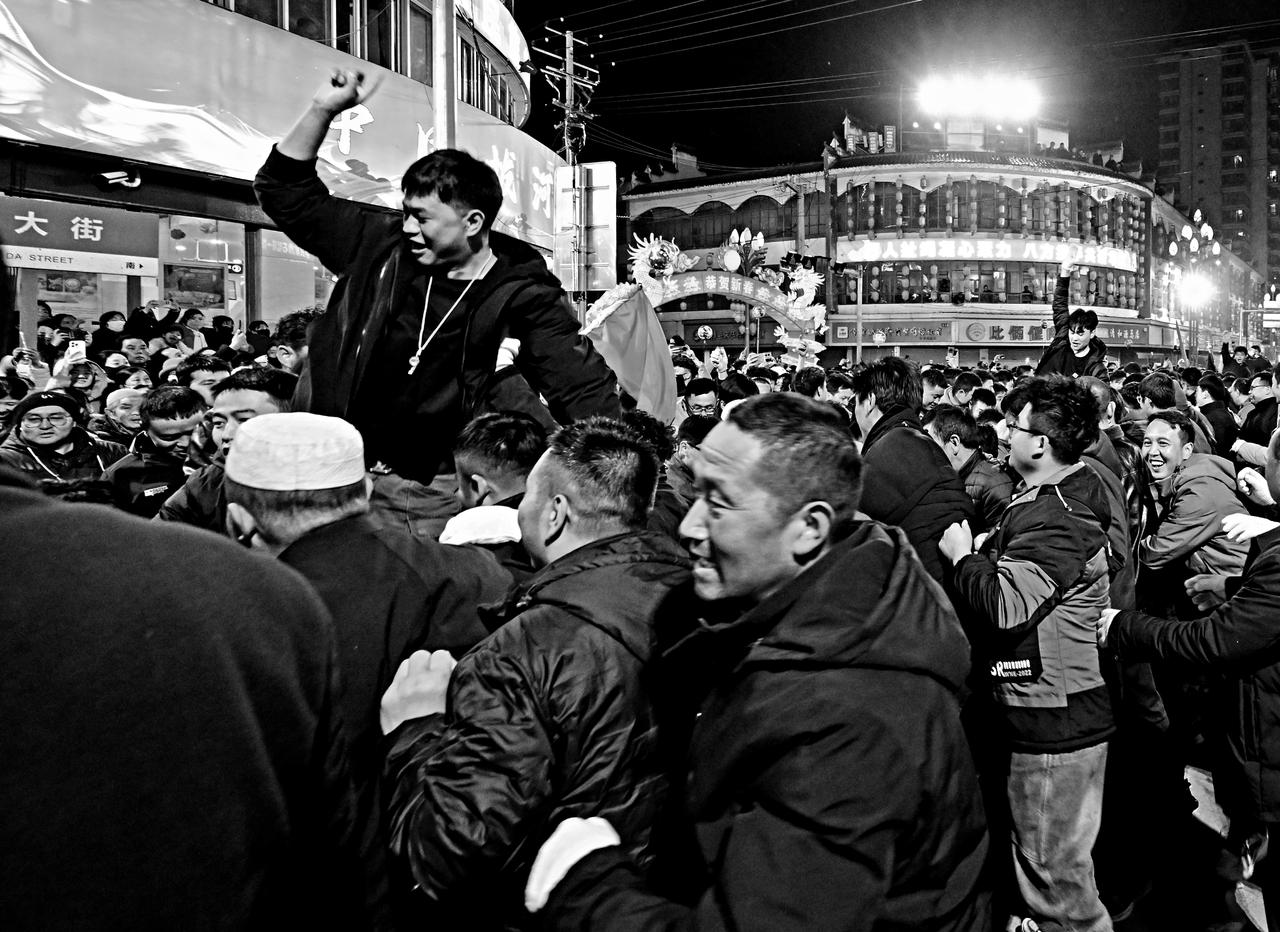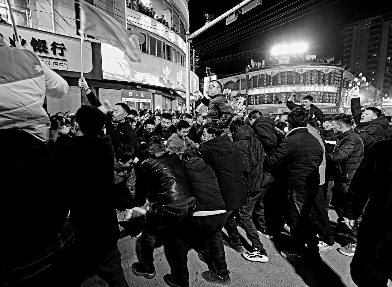 这是甘肃临潭的万人扯绳赛场上,双方队员势均力敌,不相上下,大家齐心协力,个个咬紧牙关,全力以赴,将全身力气拧成一股绳。众人众志成城,一鼓作气,凭着顽强的毅力与团结的力量,奋力拼搏,只为赢得最终的胜利!
