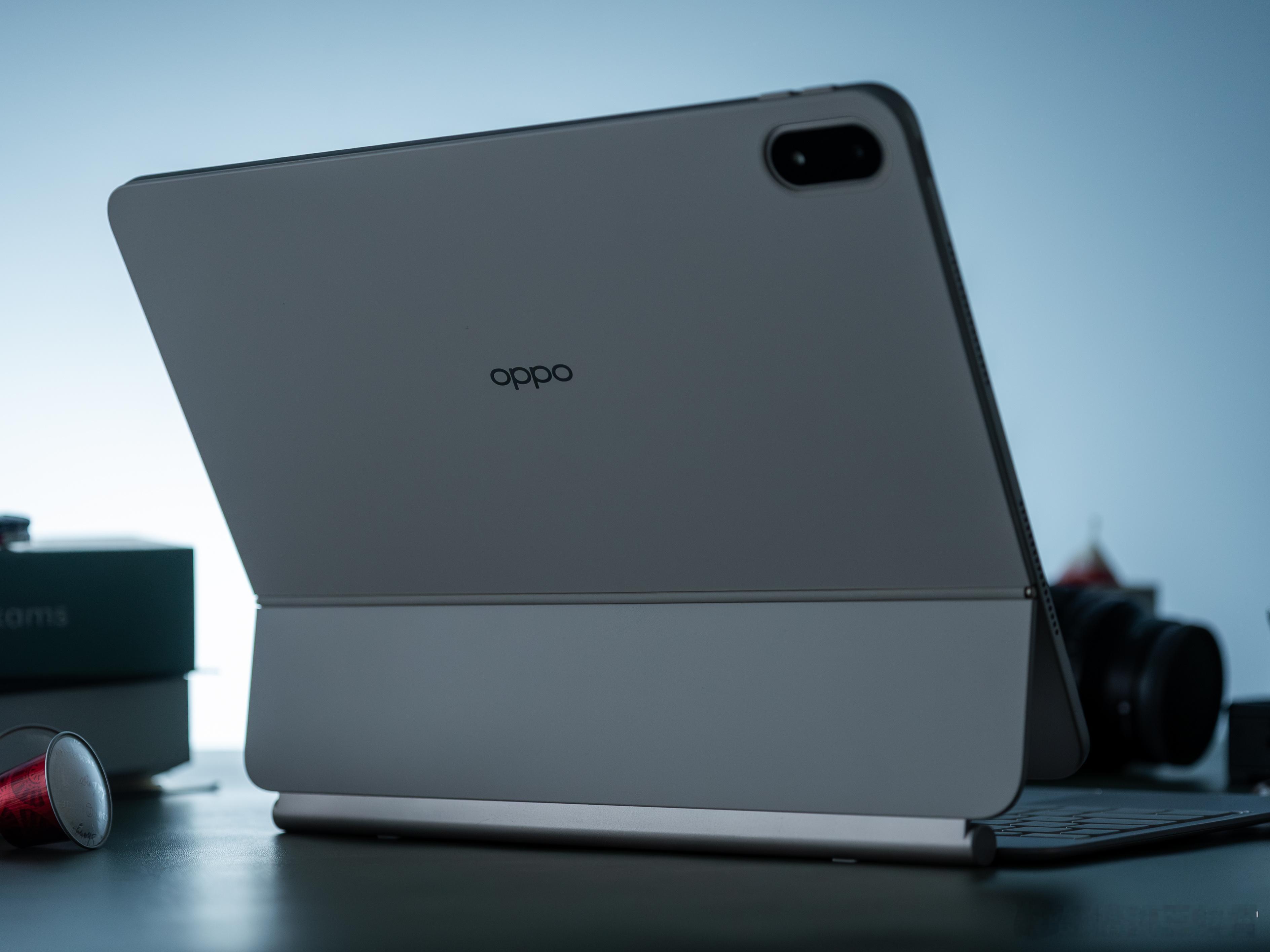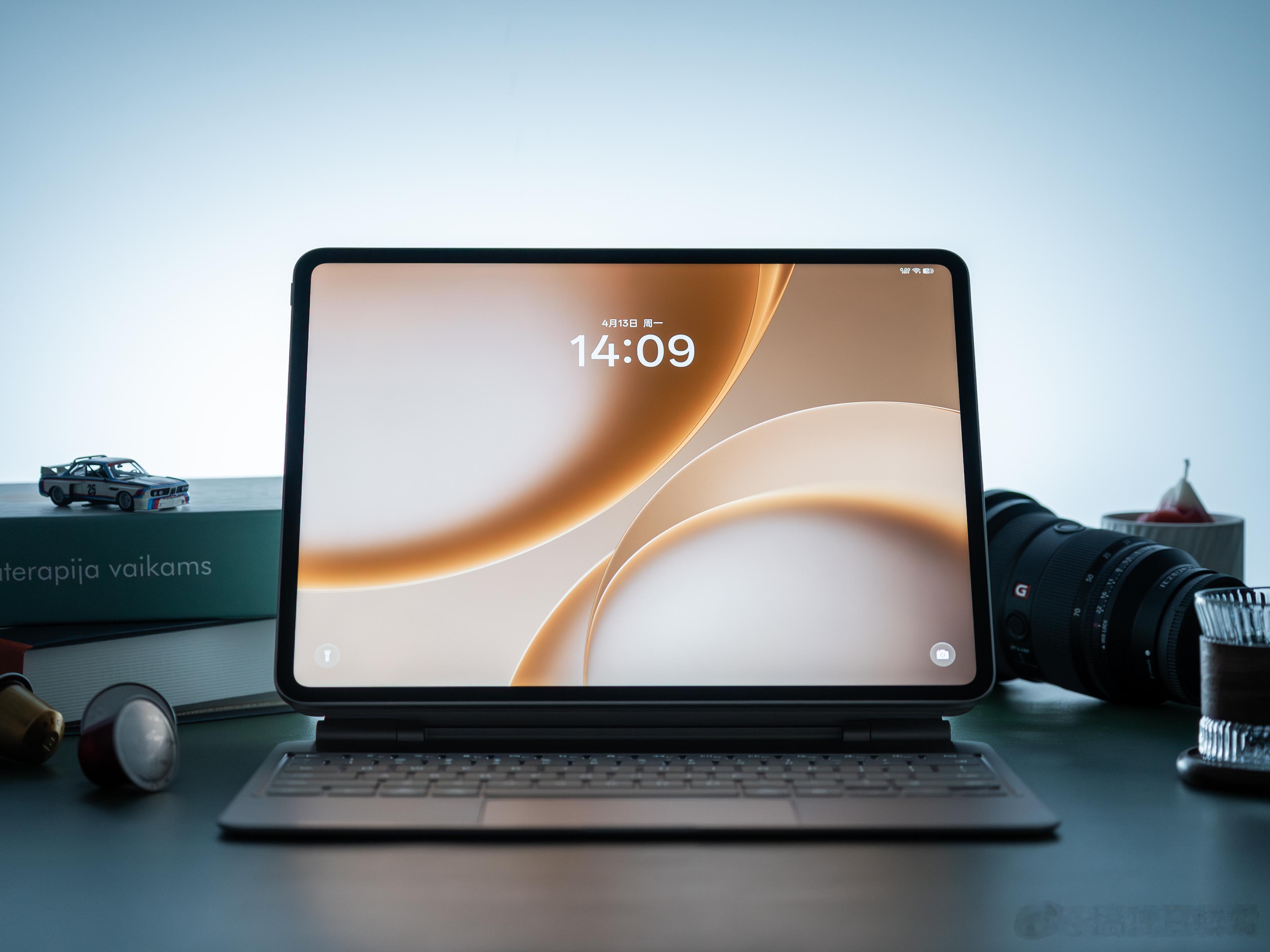 【OPPO Pad 5 Pro真机图赏】拍了组图先给大家感受下,更接近于平板电脑二合一的产品,13.2英寸的大屏,机身非常薄,只有5.94mm厚,637g重,外观还是熟悉的家族式设计,这个晨曦金配色属于比较淡的那种,挺好看。