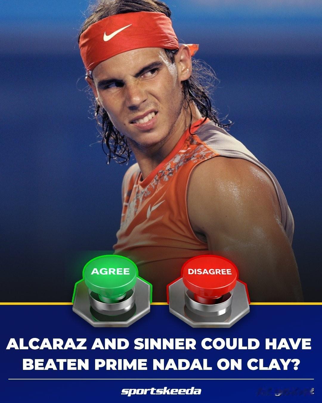 你觉得阿卡拉斯和辛纳现在的水平在红土可以击败巅峰纳达尔吗? 1,可以 2,不行