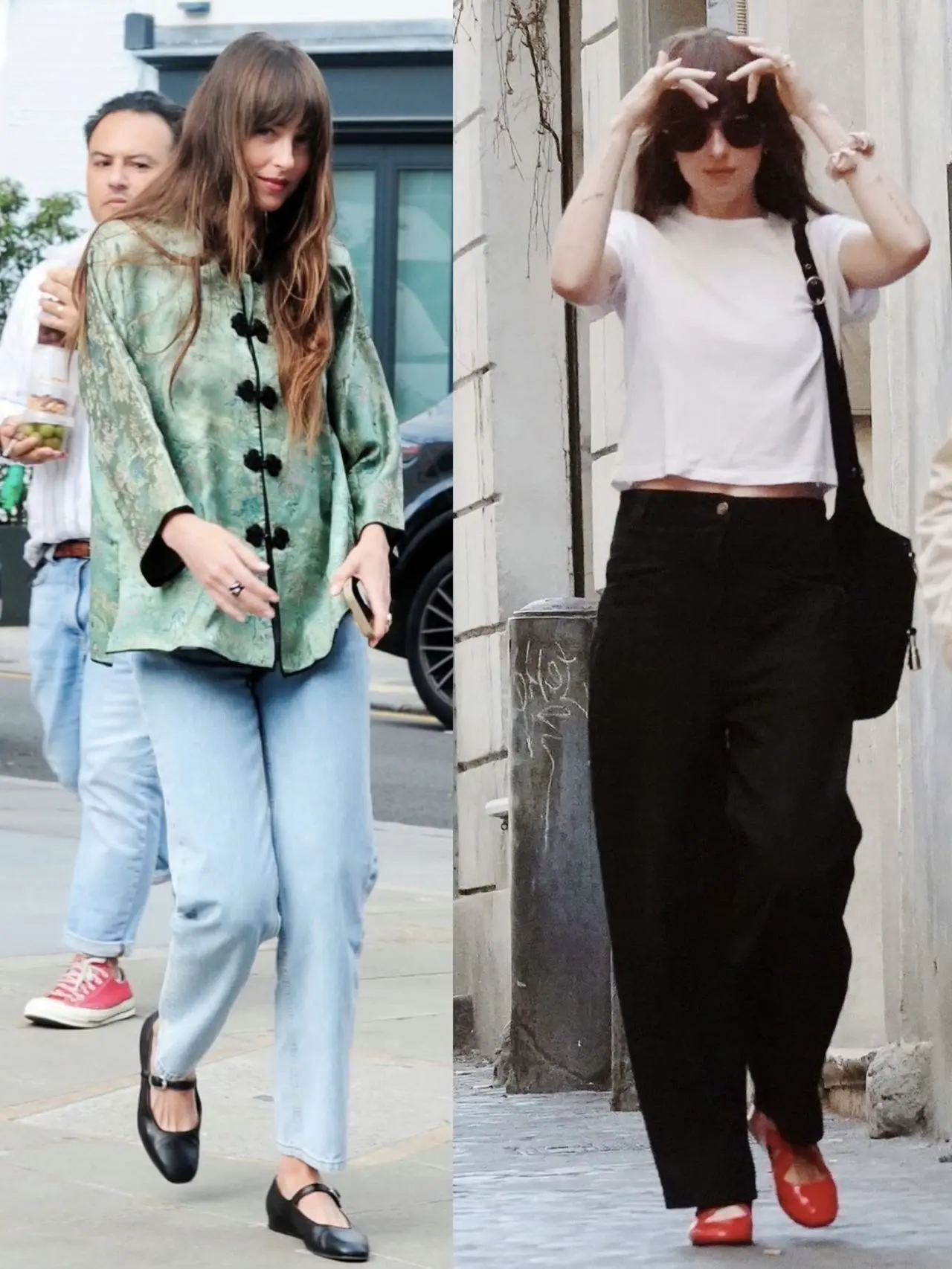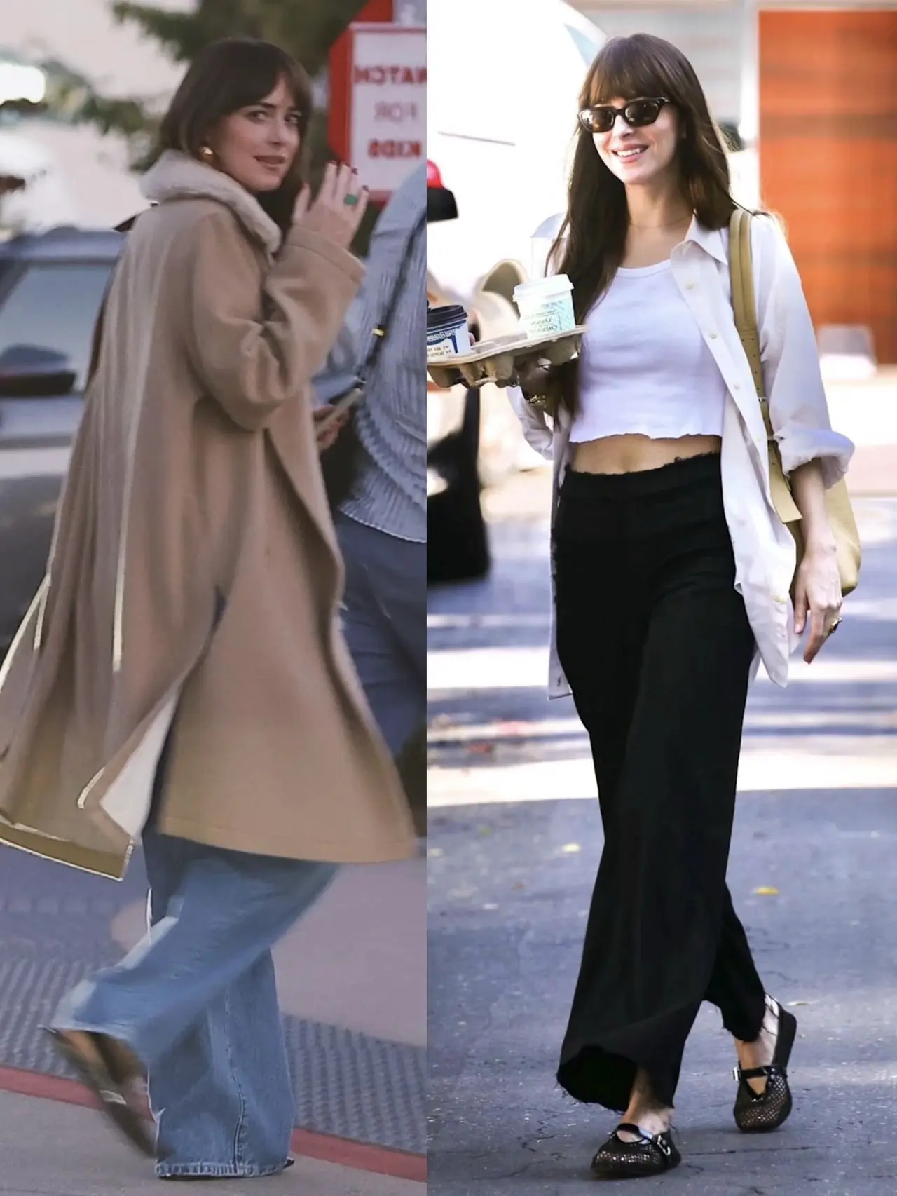 衣常换但鞋不常换,毕竟这18双都太百搭咯。Dakota Johnson 18双平底鞋盘点