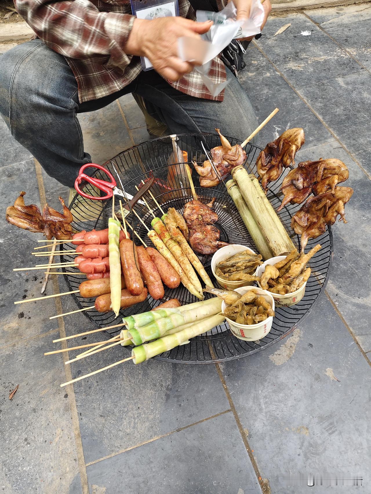 景区里有小吃店,我和姐姐喜欢尝试没吃过的东西。看到有烤的新鲜竹笋、小鱼和斑鸠,每样十元一份,我们忍不住买了一些。原汁原味的小鱼味道不错,竹笋有点麻味,但不是花椒那种麻,我不太吃得惯。斑鸠肉有点硬,我的牙齿对付起来有点困难。