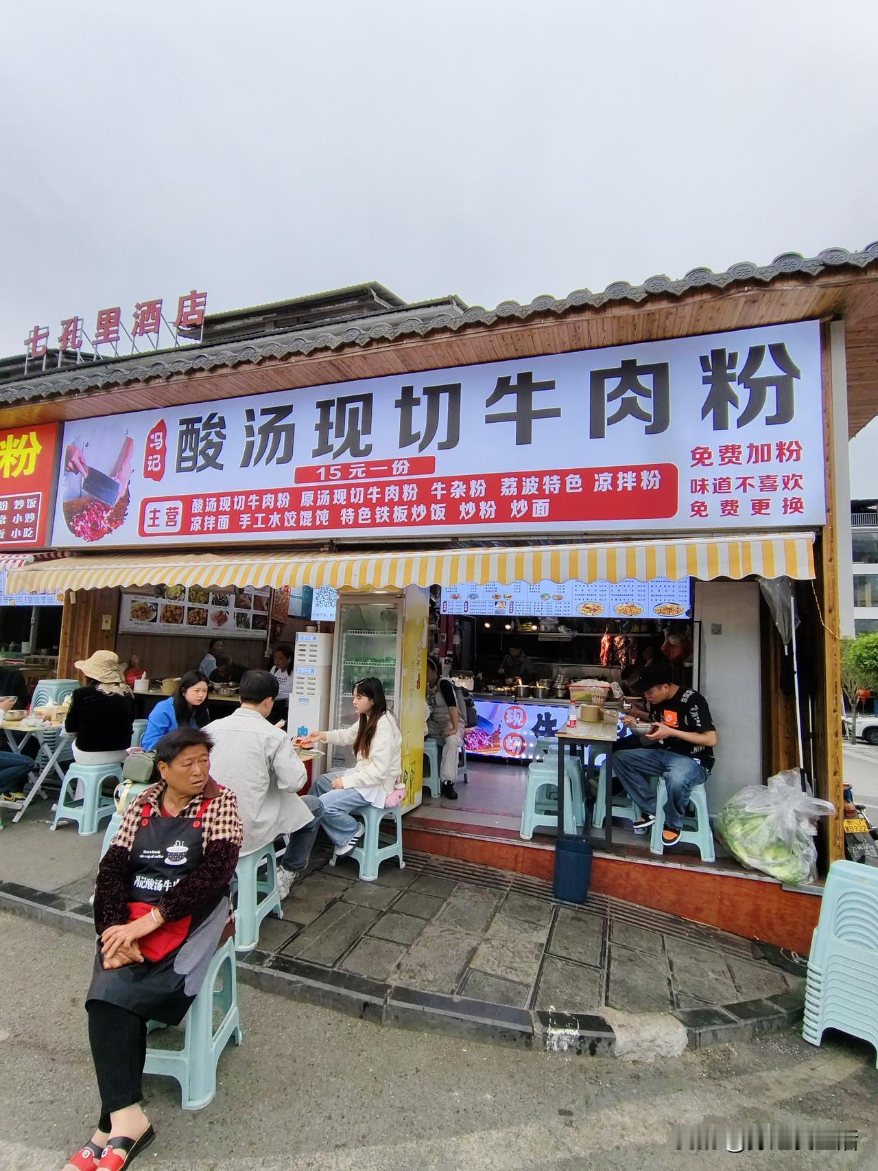 在景区外,我们先去吃饭。看到一家卖酸汤牛肉粉的店,有当地工作人员在里面吃,我和姐姐便决定吃这个酸汤牛肉粉。