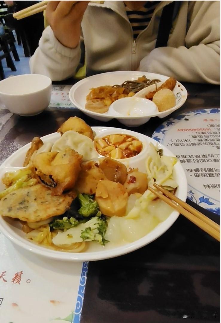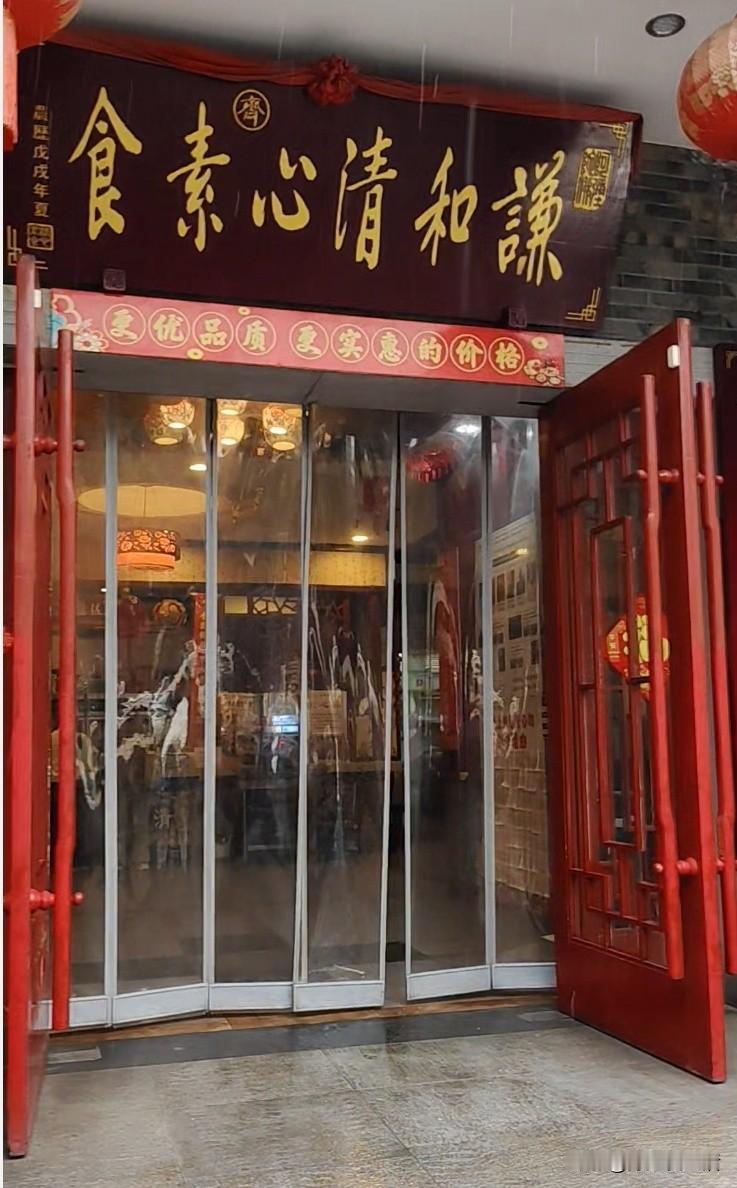 午饭,我带姐姐去彭州吃素食。上次姐姐和外甥女来成都,我就带她们来过这儿。喜欢素食的姐姐一直对这儿念念不忘。于是,在这样的下雨,我约了网约车,带姐姐去彭州谦和清心素食店吃午饭。