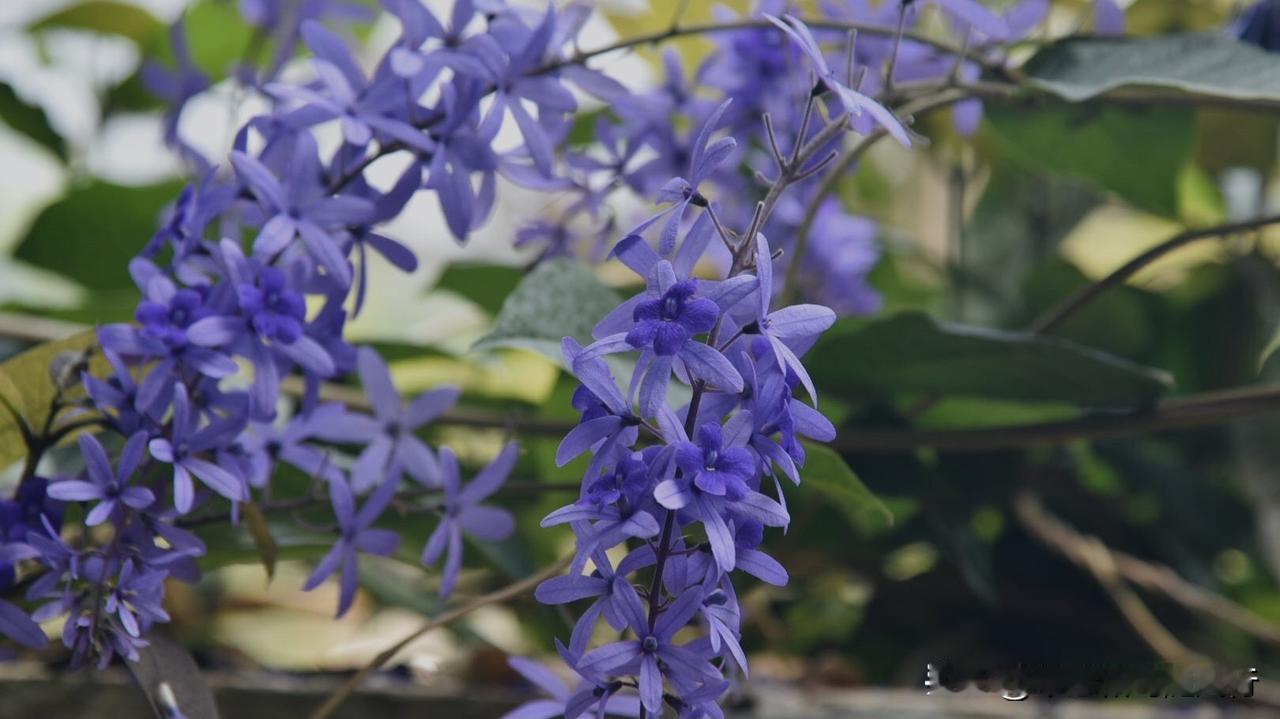 在中国文人眼中,蓝花藤如“紫霞倾泻”,将清冷忧郁的气质融入传统东方美学意境。