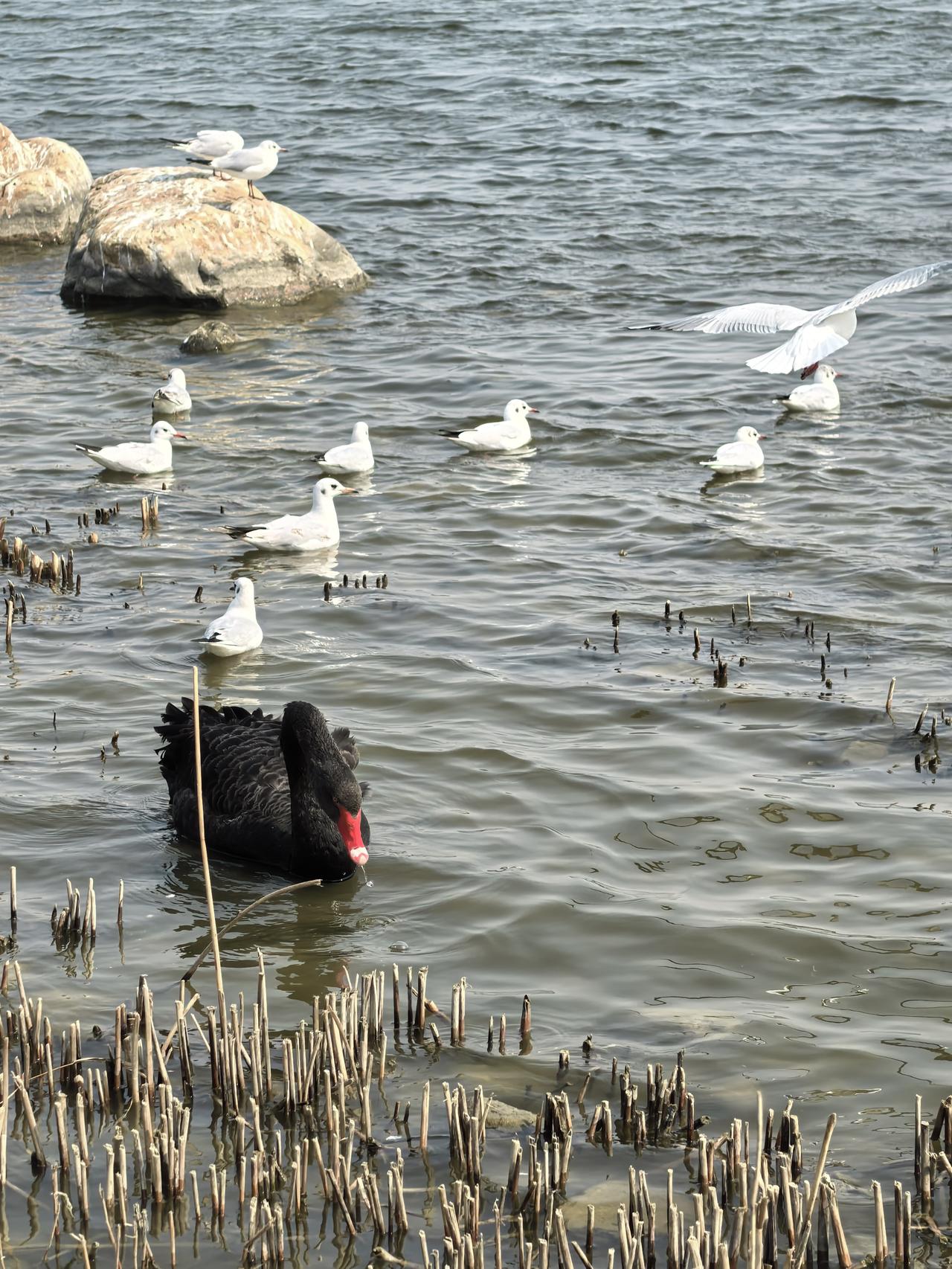 胶州的朋友空闲时间可以去少海看水鸟了。年前黑天鹅是主角,现在是水鸟登场,远远看去群鸟低徊,有的栖在石上有的在水里秀恩爱。人活得没有水鸟自在,鸟儿吃饱了悠哉悠哉,人沉浸欲望的海洋里永不满足所以有痛苦,知足常乐知足常乐,体会了这四个字也算修行