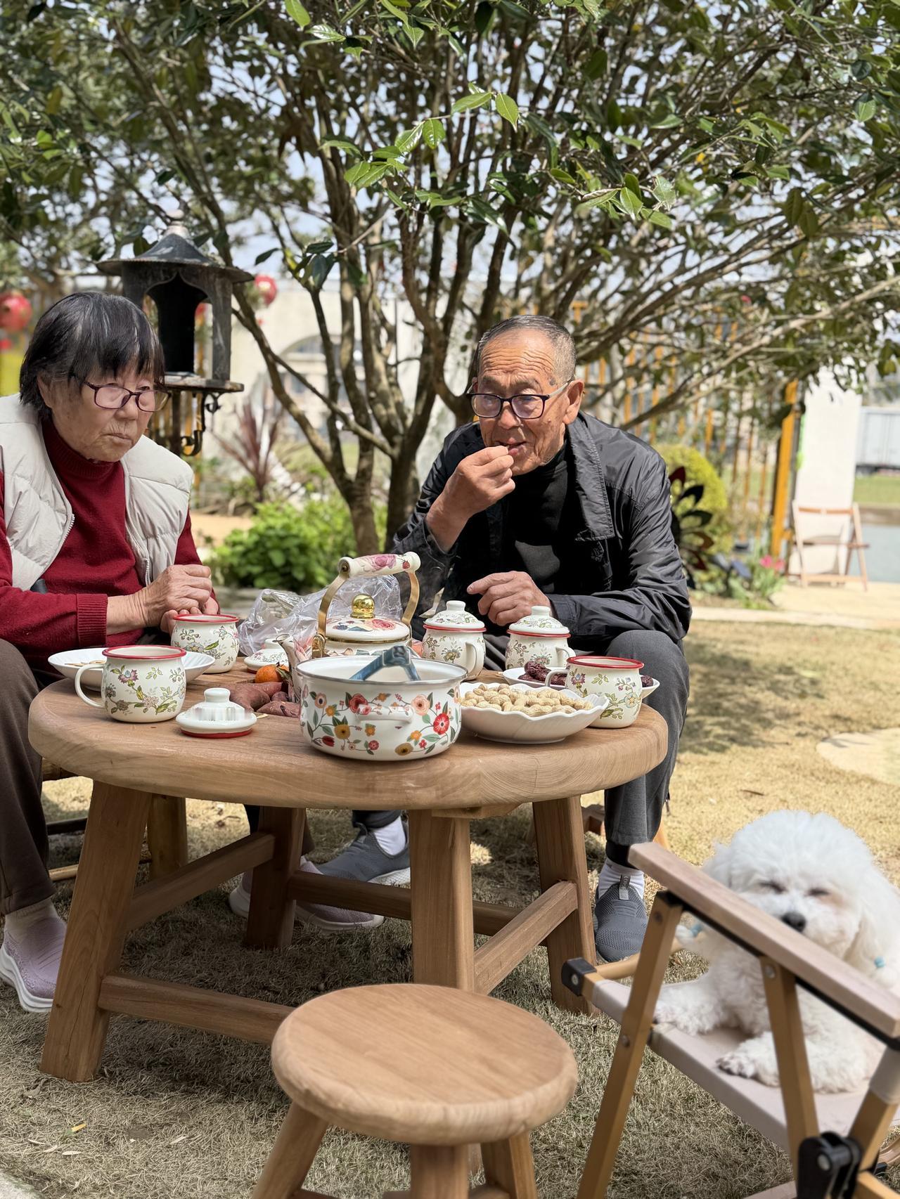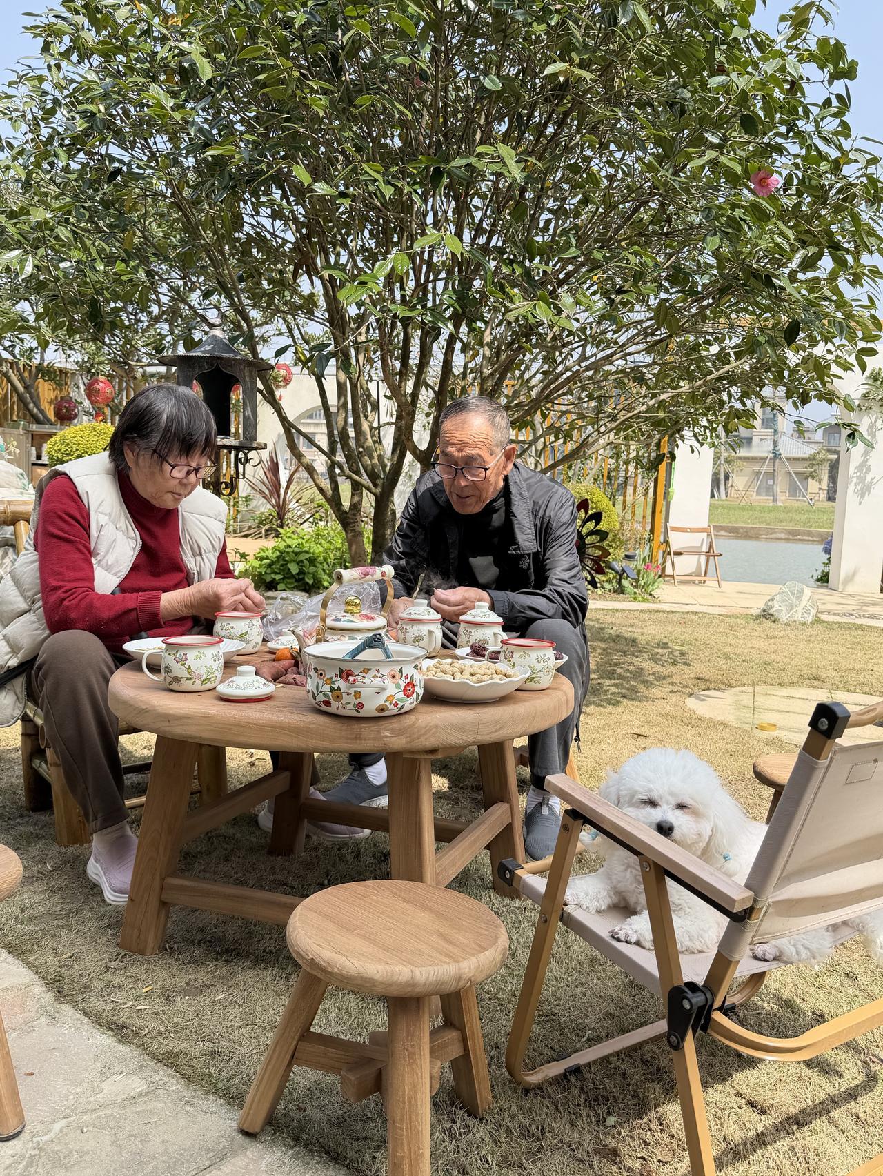 父母一直生活在北方农村,这是他们第一次在江南遇见春天,第一次在儿子的花园里围炉煮茶。
