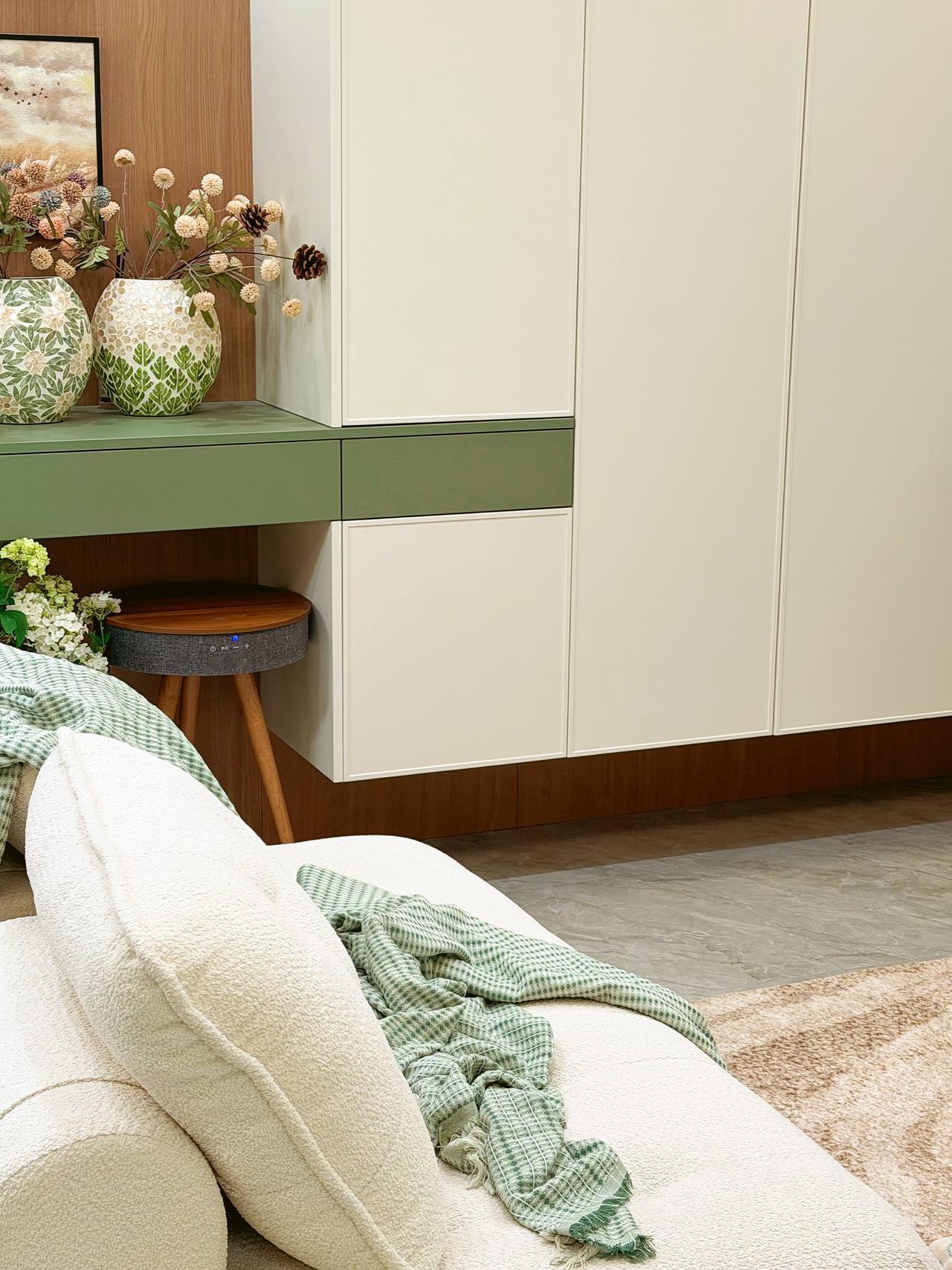 这次自己操刀设计,现代中古风,用了喜欢的中古绿配奶油白。住进去那天,突然有种说不出的踏实。