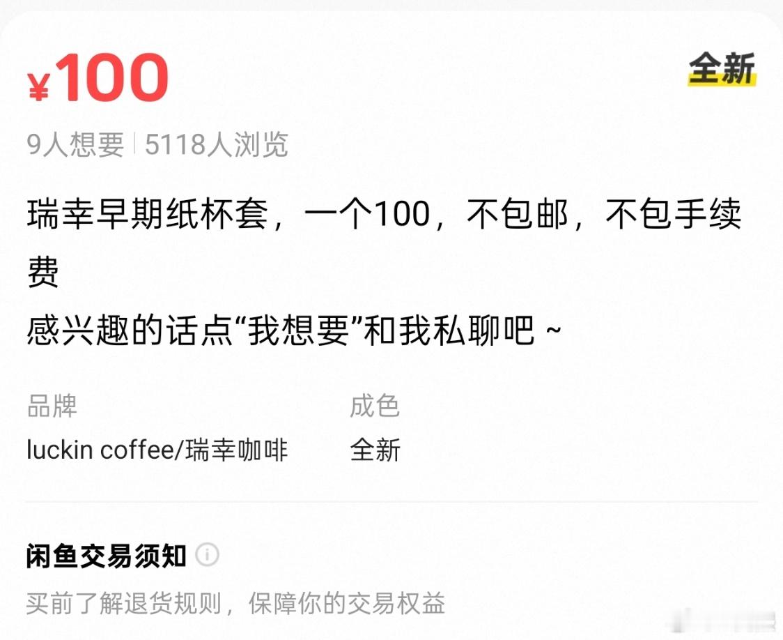 瑞幸早期纸杯套,一个100这是想钱想疯了吧...