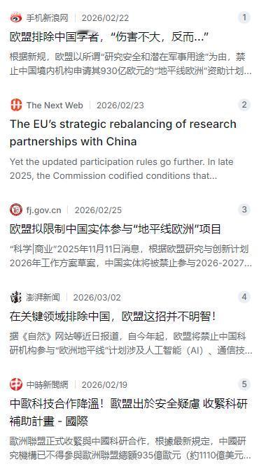 欧盟的这种短视操作,不仅无法阻挡中国科研进步,反而会加速自身的科研孤立。科研的本质是开放合作,人类最前沿的科学突破从来都不是靠封闭实现的。欧盟把中国从核心合作框架中排除,失去的不仅是中国科研人员的智慧和创造力,更是整个科研生态的活力。当欧洲科学家在最需要合作的前沿领域被切断与中国同行的联系时,他们失去的将是全球最活跃的科研网络和最丰富的数据资源。