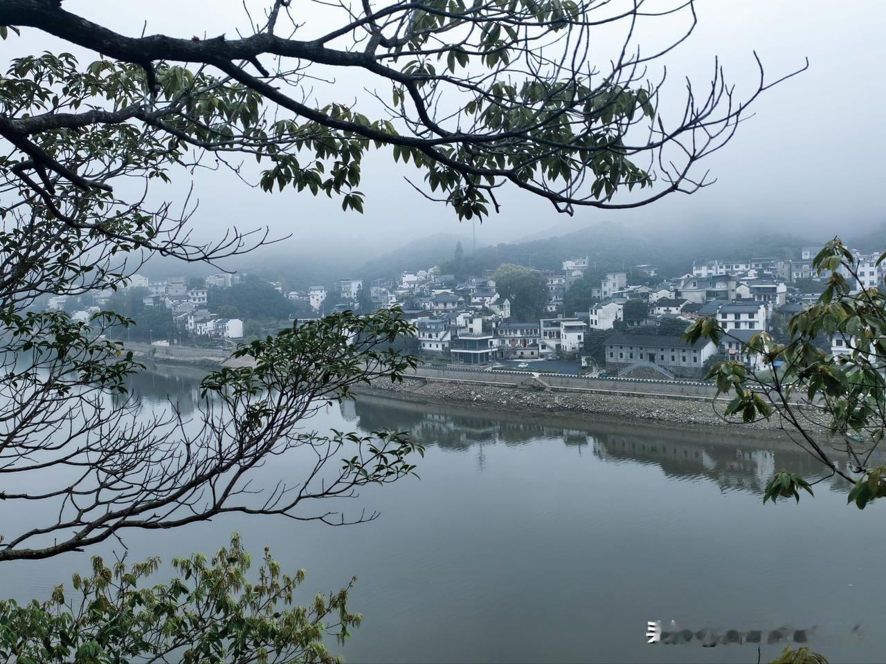 朱永光的《江雾漫村》,江雾弥漫村庄,透着春日的宁静与神秘。