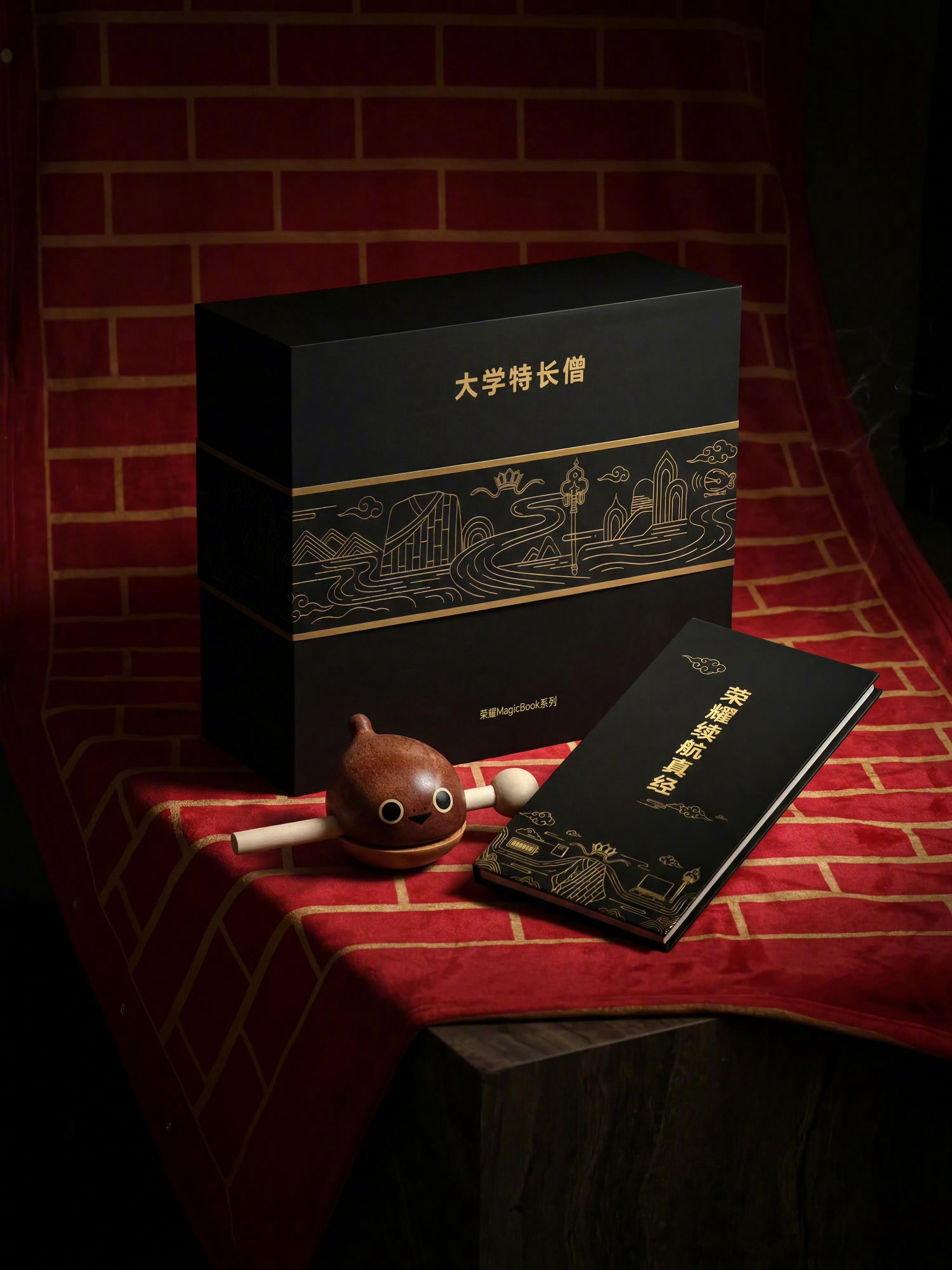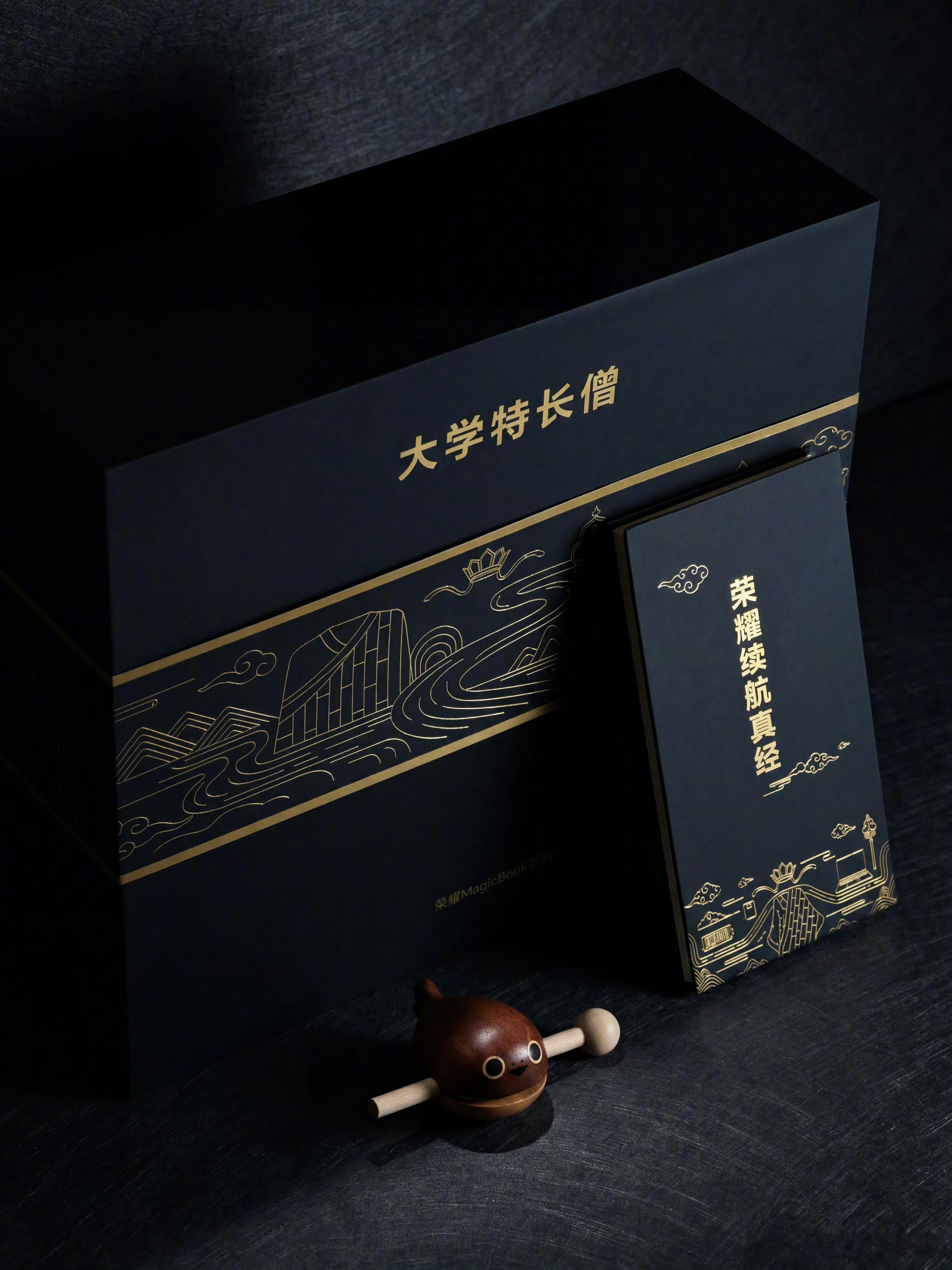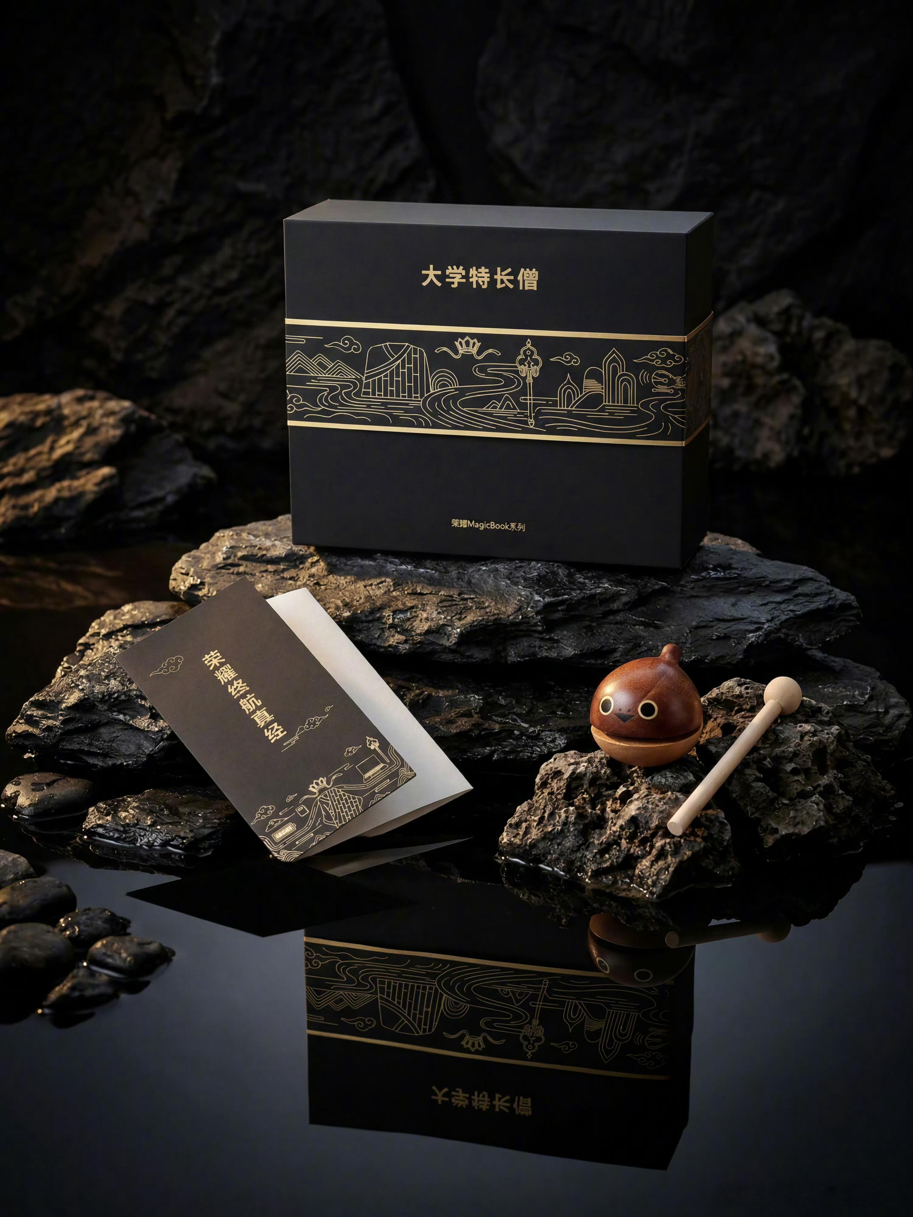 荣耀寄来了一套MagicBook 14/16的周边,居然是一个木鱼、一本“真经”