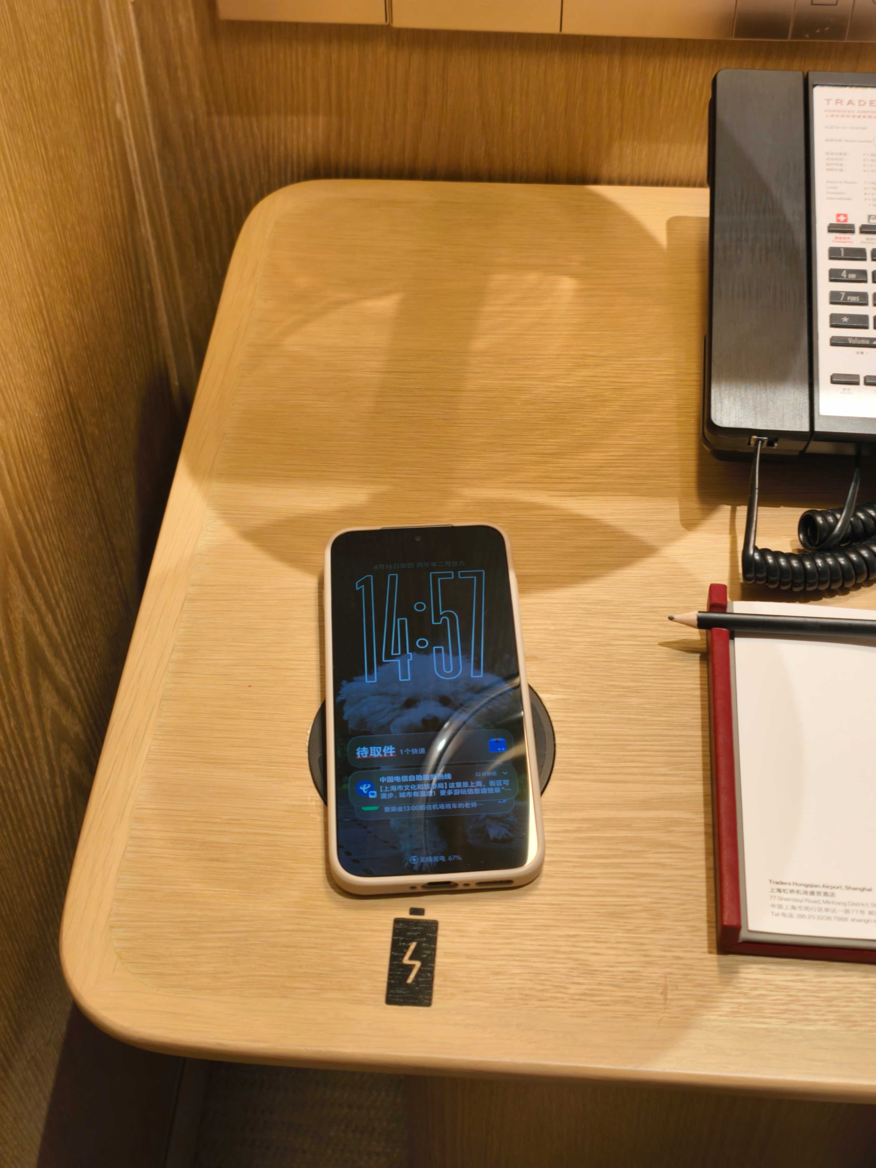 走得太急,把充电器忘上个酒店了,幸好现在的酒店有无线充电,床头柜跟桌子一体的无线充电板,好实用!!!