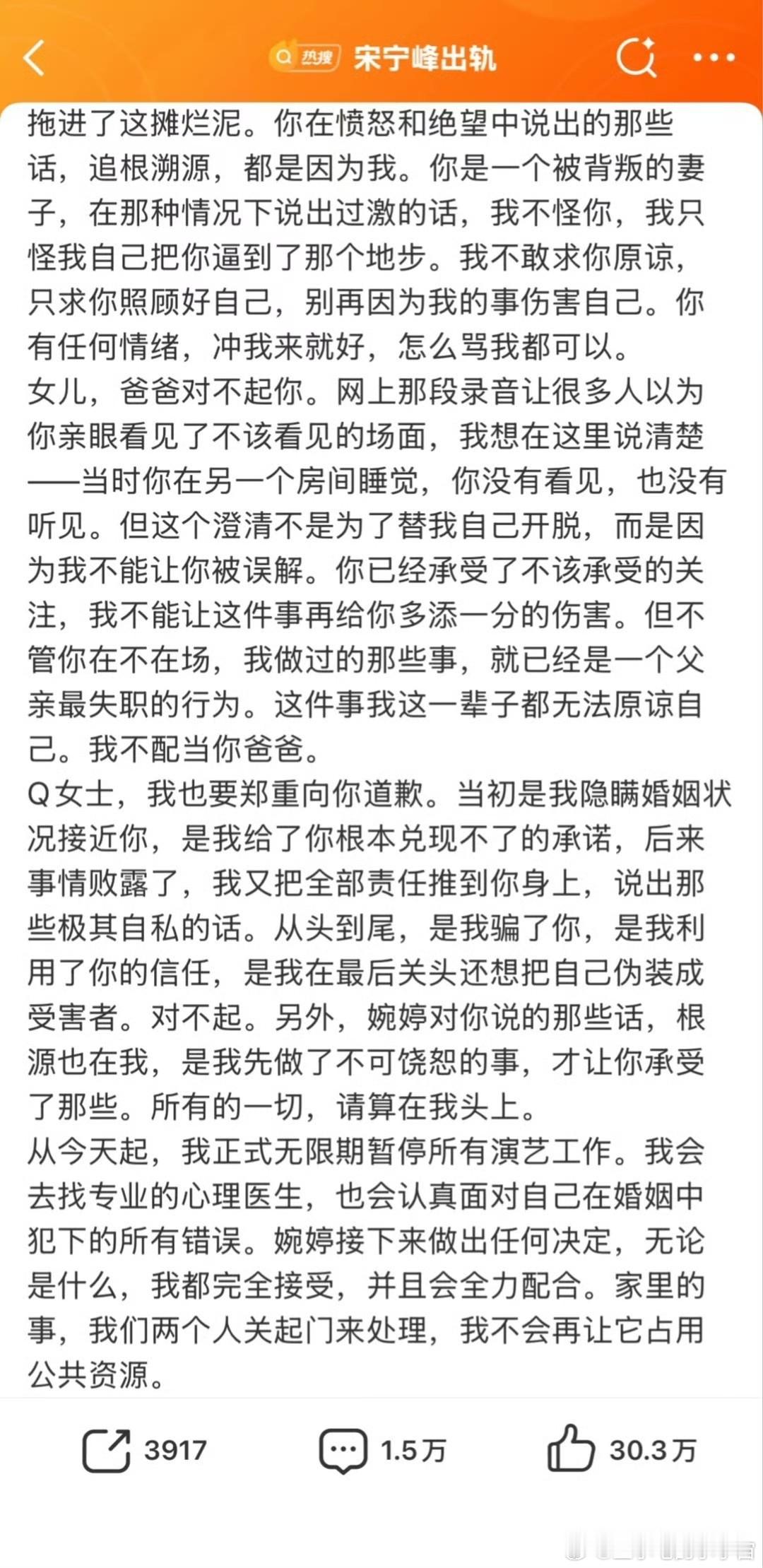 张婉婷在直播中揭露了宋宁峰出轨后的现状: