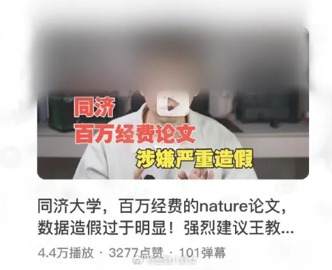 同济大学一学院院长、特聘教授王某,被质疑“百万经费Nature论文数据造假”!校方通报:对学术不端“零容忍”,启动调查程序