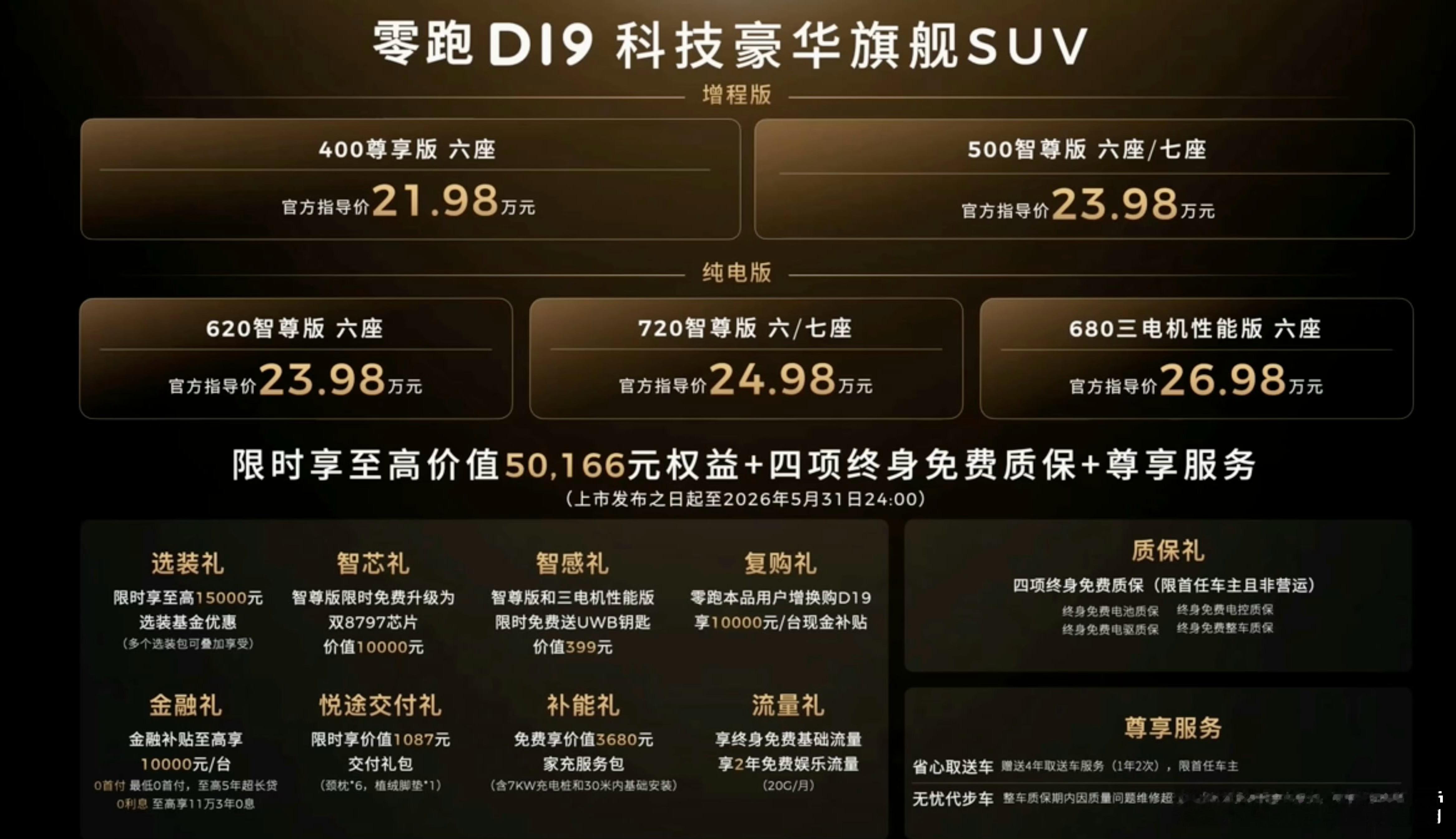 零跑D19这价格是认真的么,增程400尊享六座版售21.98万起、纯电620智尊