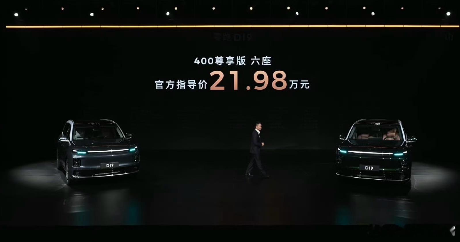 零跑D19的上市价格出来了,起售价21.98万,顶配26.98万。这个定价超乎想