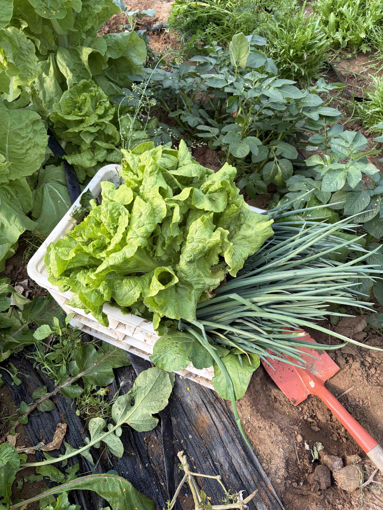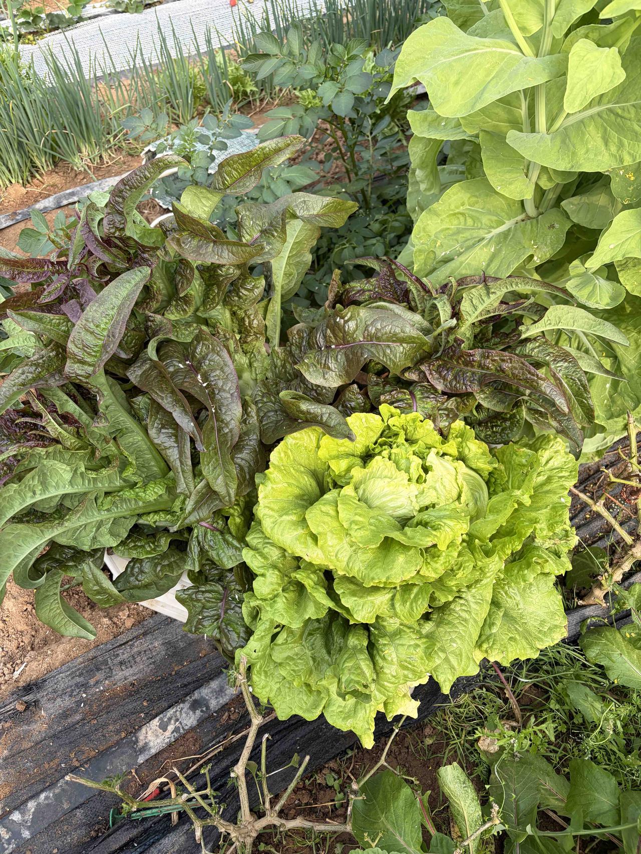 莴苣、生菜、苦菊、小葱、蒜苗、菠菜、水萝卜……还有两种菜——折耳根和牛皮菜,是两位在山东的四川老乡的最爱,当地买不到,我种了便给他们发点。