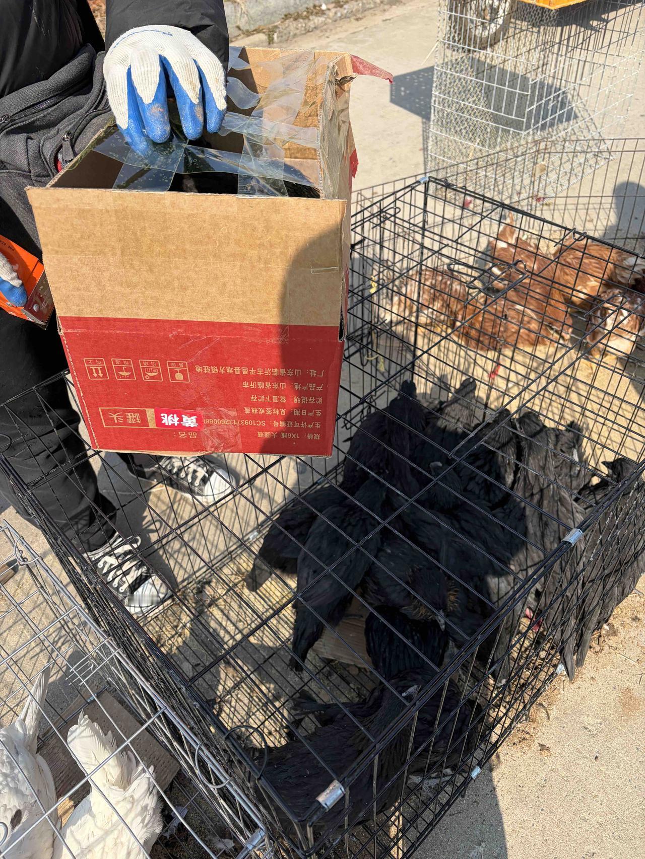 赶集,我看到卖五黑鸡的没忍住,挑了一公三母共四只。大哥迷上野乌鸡,非要买两只母鸡,晚上还去养殖场抓黑公鸡回来配种。