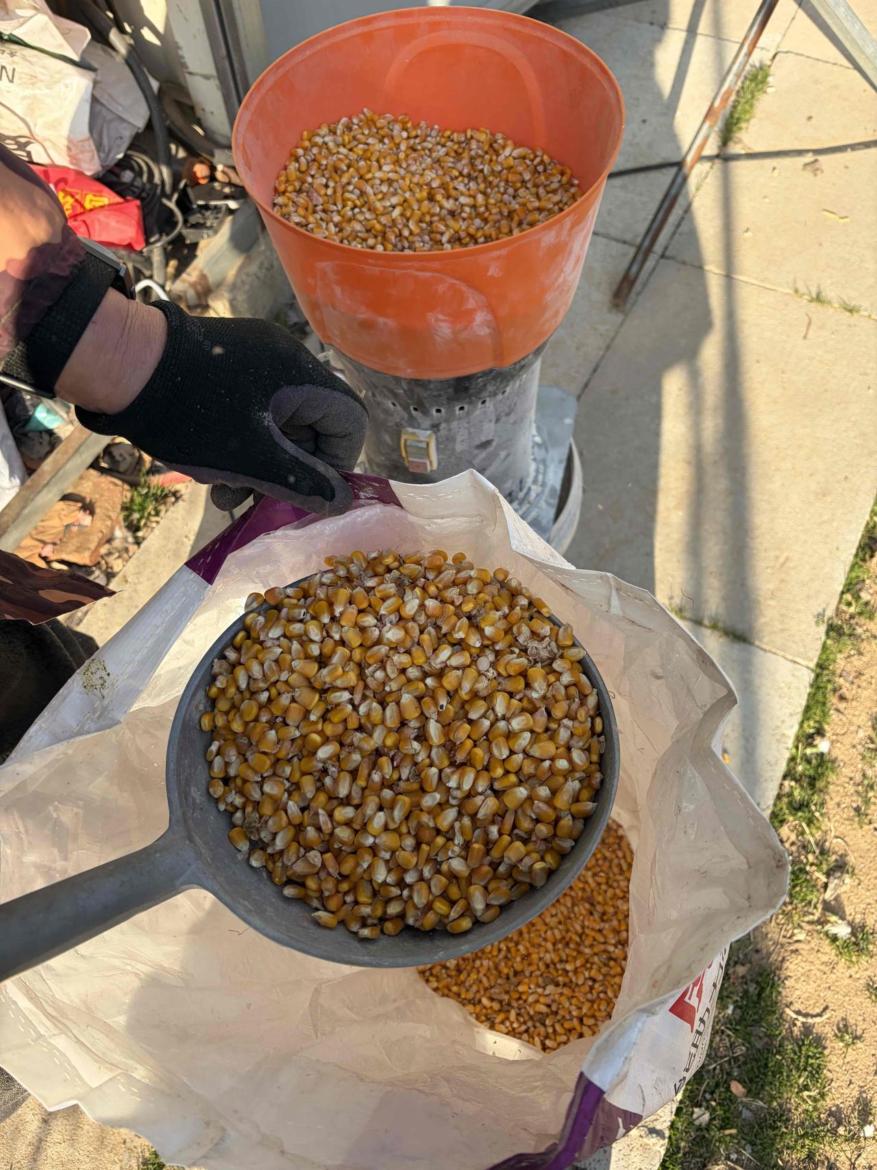 玉米面喂完了,回家抓紧碎了几袋,小粉碎机真好,不用拉外面磨坊去,搬上搬下累,还省了加工费。