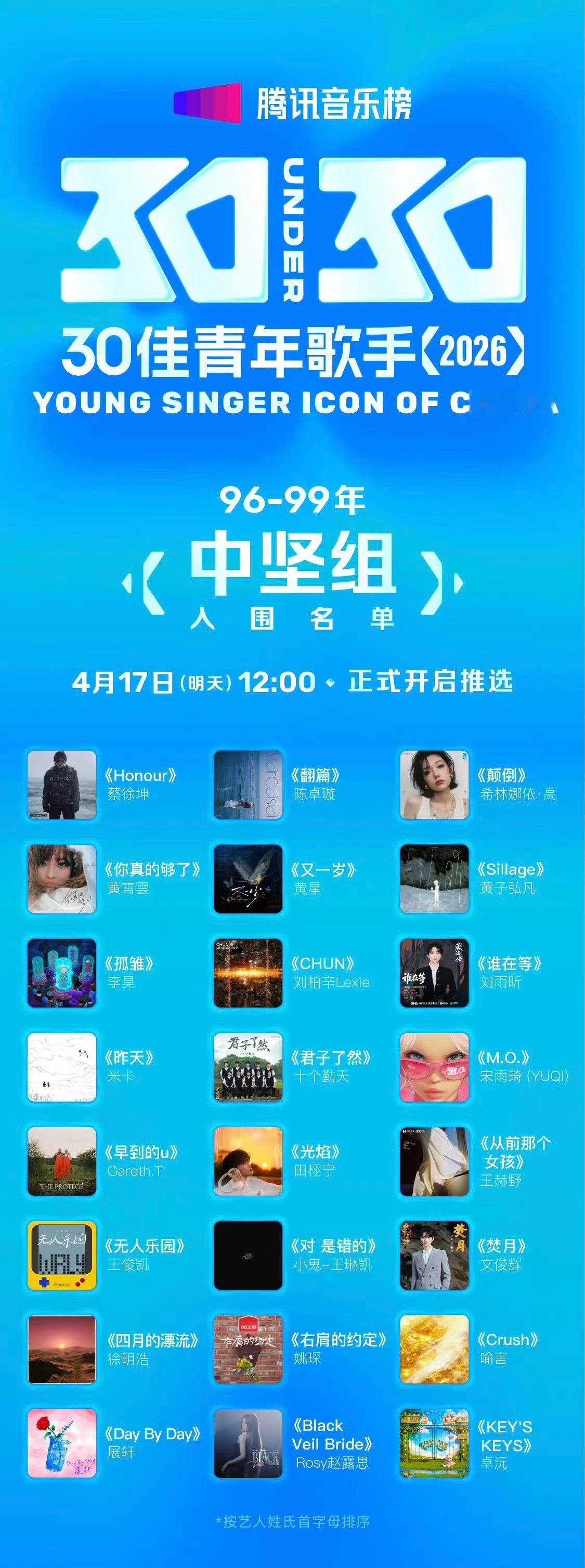 田栩宁入围30佳青年歌手,没有梓渝不太合理啊?
