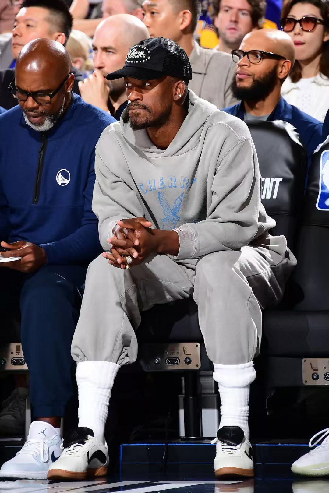 勇士超燃的比赛 巴特勒也是到场见证了 穿着All Around白黑配色李宁JB系