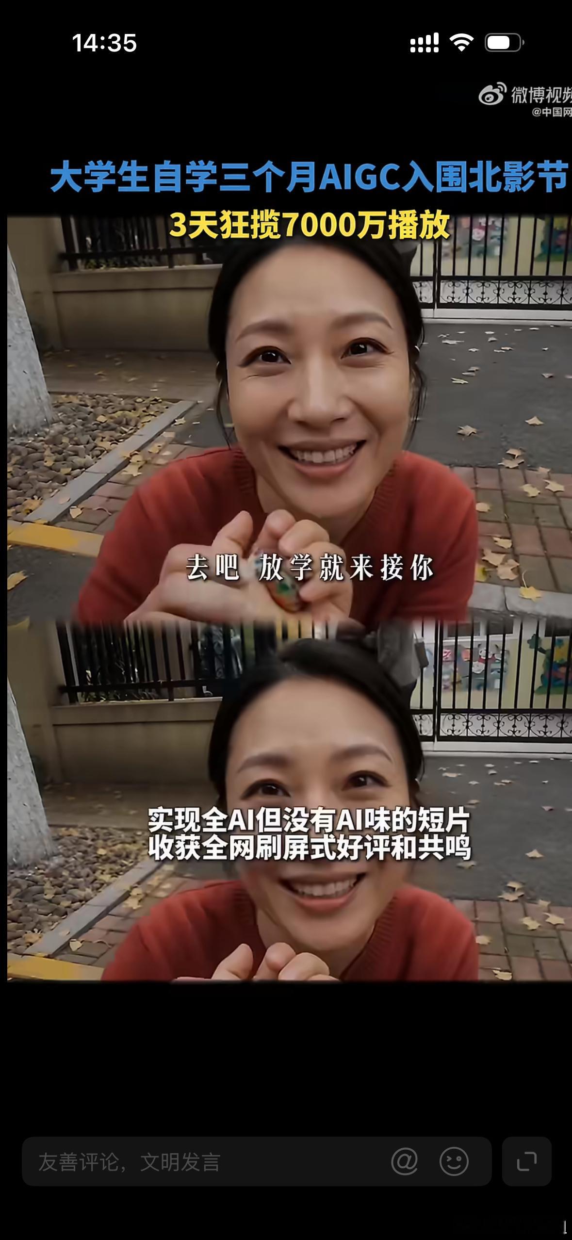 大学生自学三个月AIGC入围北影节 完全没冰冷感,故事还特动人,自学三个月有这