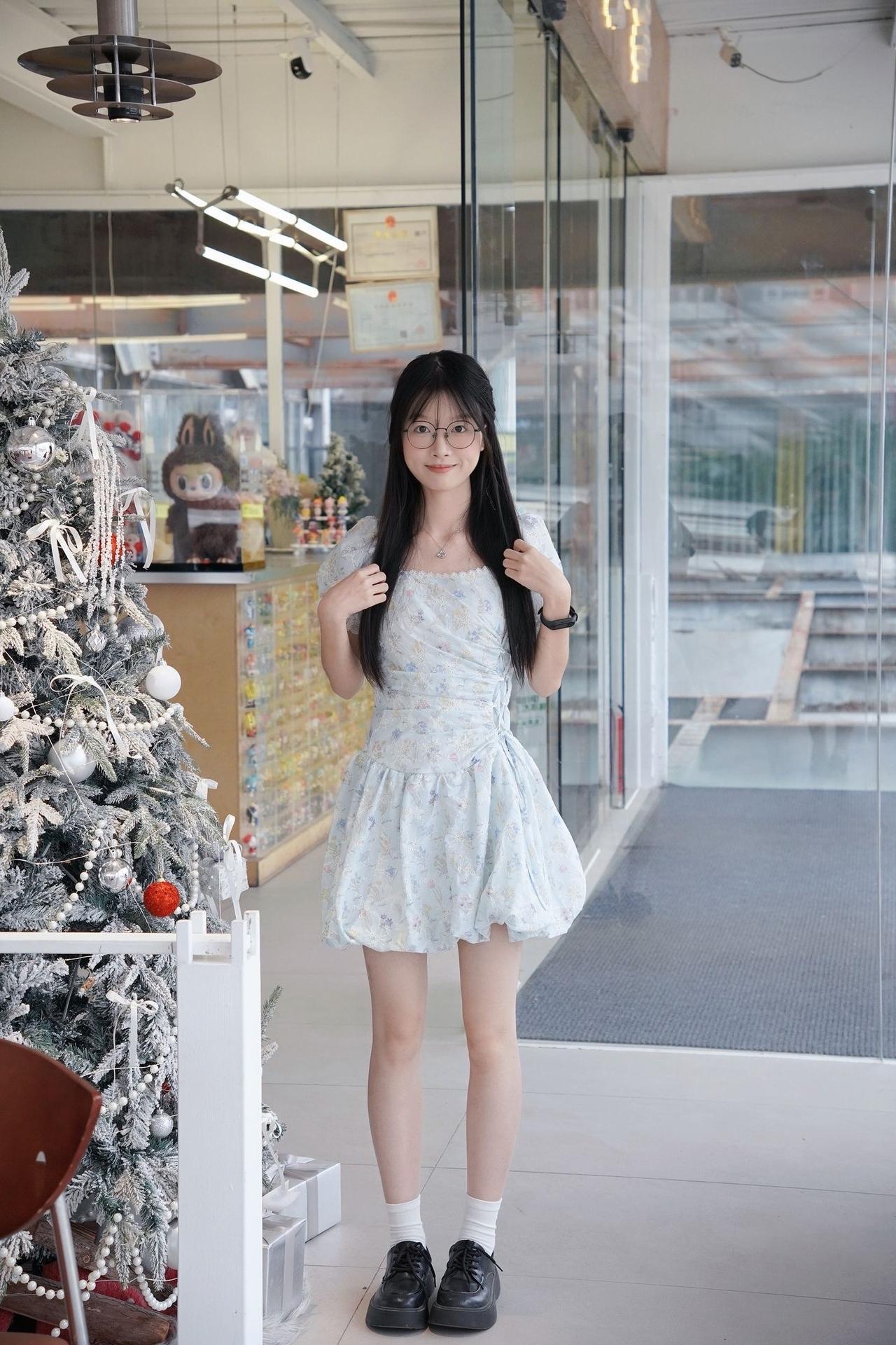 浅蓝碎花裙搭配厚底鞋,是属于夏天的清爽与甜妹感,温柔又元气,把少女的清甜与活力穿