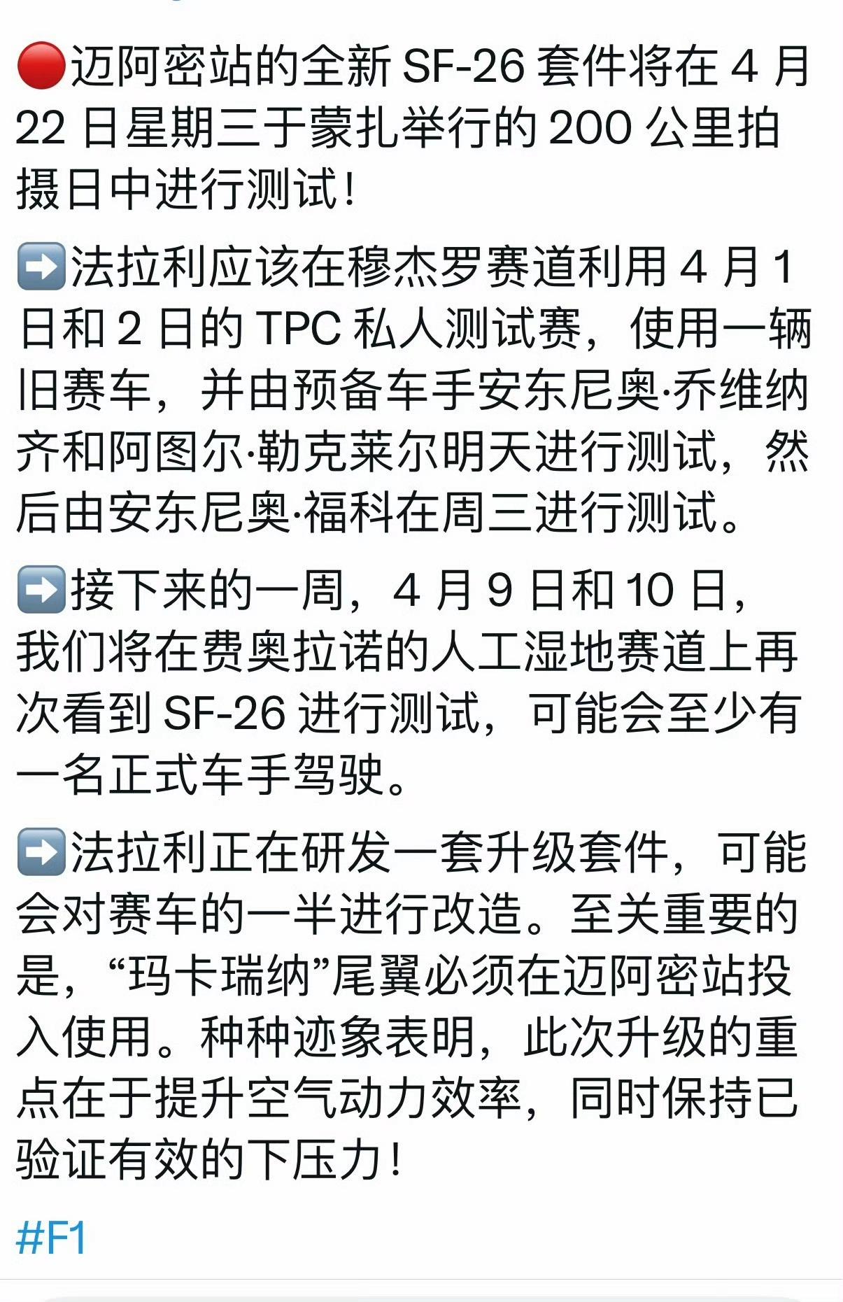 窝法有戏?别到了五月一看,全是反向升级…… 法拉利车队将在迈阿密站带来一套规模相