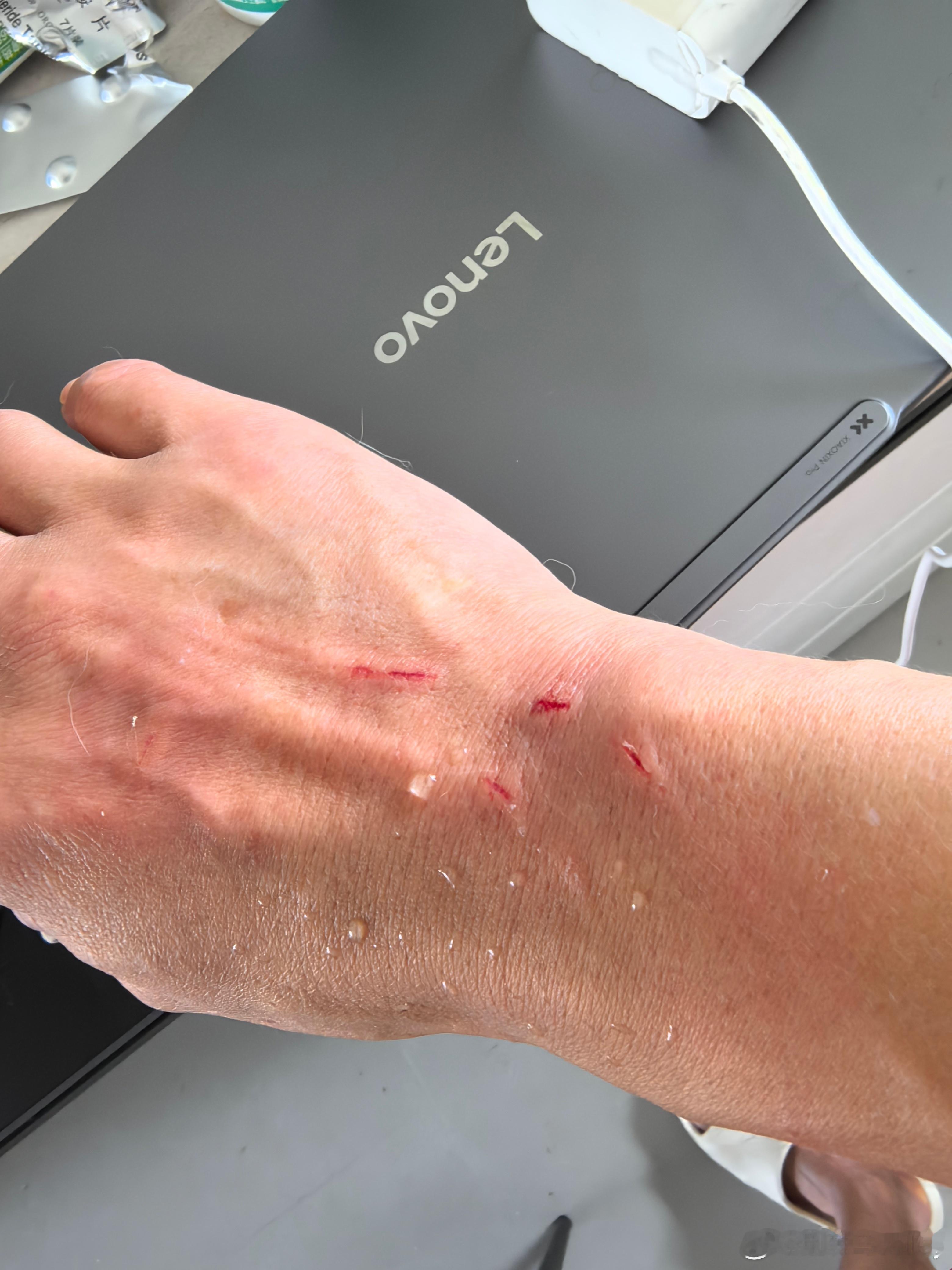 进入发情期了,平时都在宠物店洗澡,这次说在家洗一下,结果掏耳朵的时候里面耳螨,打死不让弄,强制一下,结果应激了,自己也光荣受伤。
