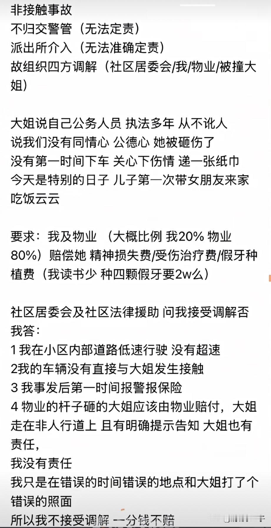 4 、物业的杆子砸的大姐应该由物业赔付,大姐走在非人行道上且有明确提示告知,大姐也有责任,我没有责任。我只是在错误的时间错误的地点和大姐打了个错误的照面,所以我不解释调解,我一分钱都不赔偿。[赞]